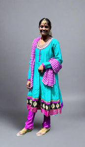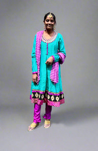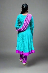 • Handmade  Silk Cotton Turquoise Green Embroidered Anarkali / Gown