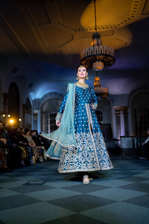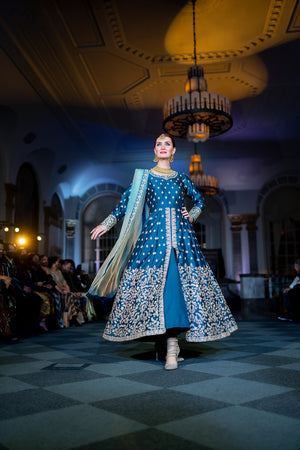 • Handmade Silk Dark Sapphire Blue Embroidered Gown
