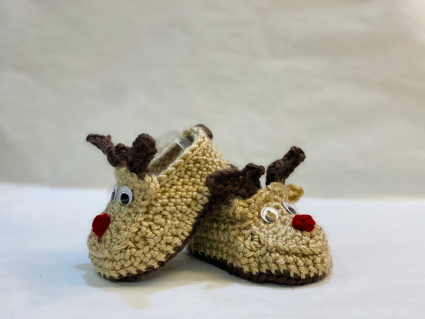 • Ruchi's Handmade Crochet Reindeer Baby Booties