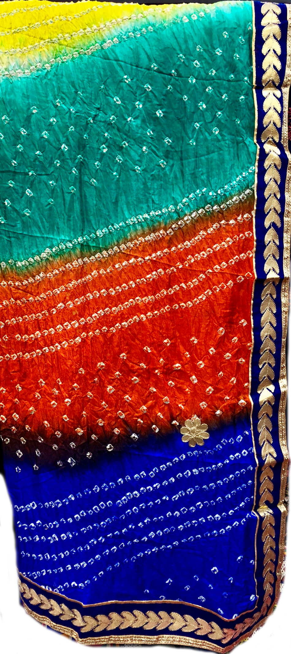 Chiffon Egyptian Blue With Gotta Patti Work Border Scarf