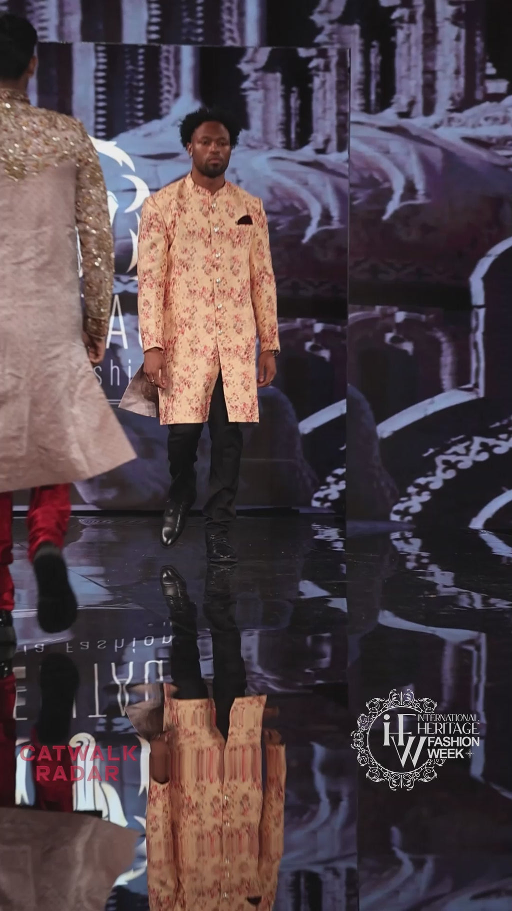 • Handmade Silk Brocade Flower Print Salmon Red Sherwani / Jacket