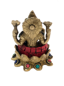 • Brass Laxmi Turquoise and Coral Mosaic Idol