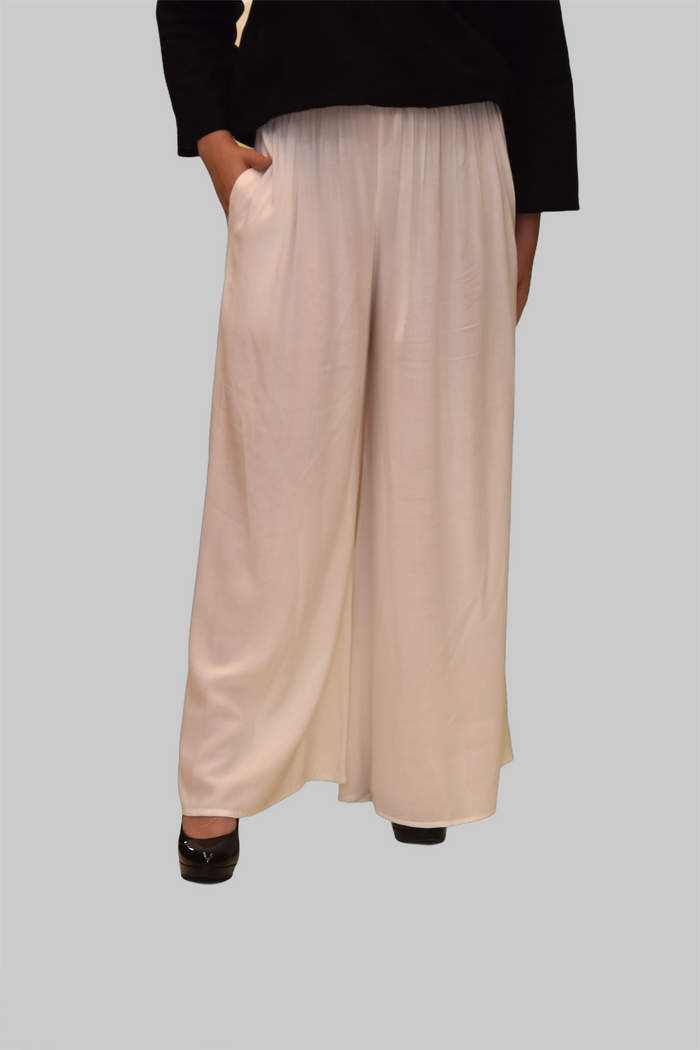• Handmade Cotton Silk Daisy White Palazzo pants