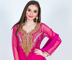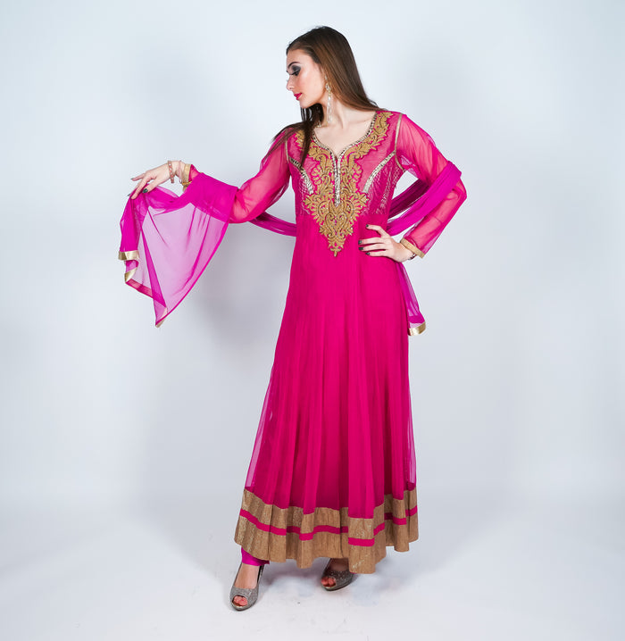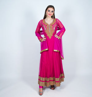 • Handmade Silk & Net Embroidered Magenta Pink Anarkali Gown