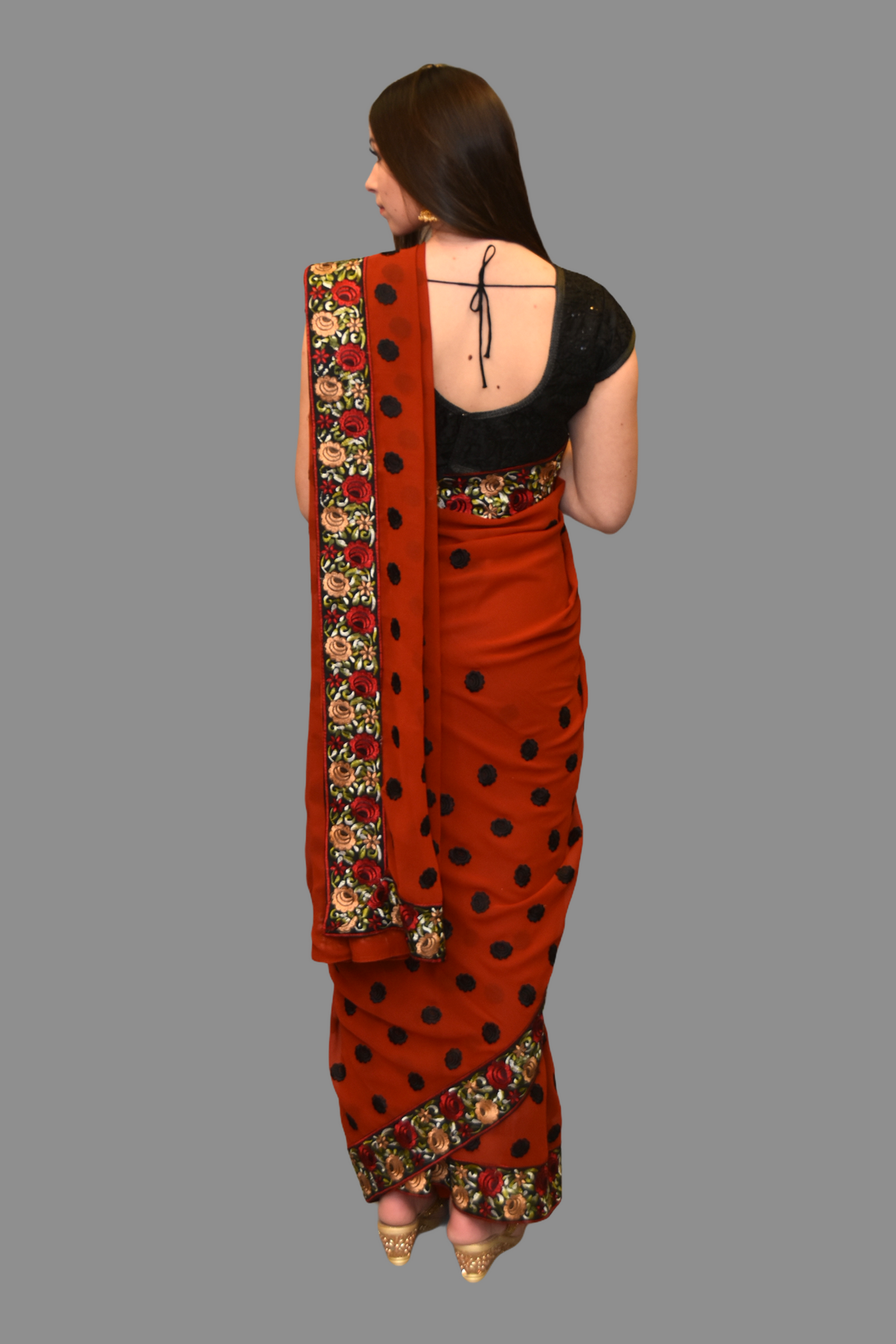 • Handmade Silk Georgette Embroidered Cranberry Red Saree