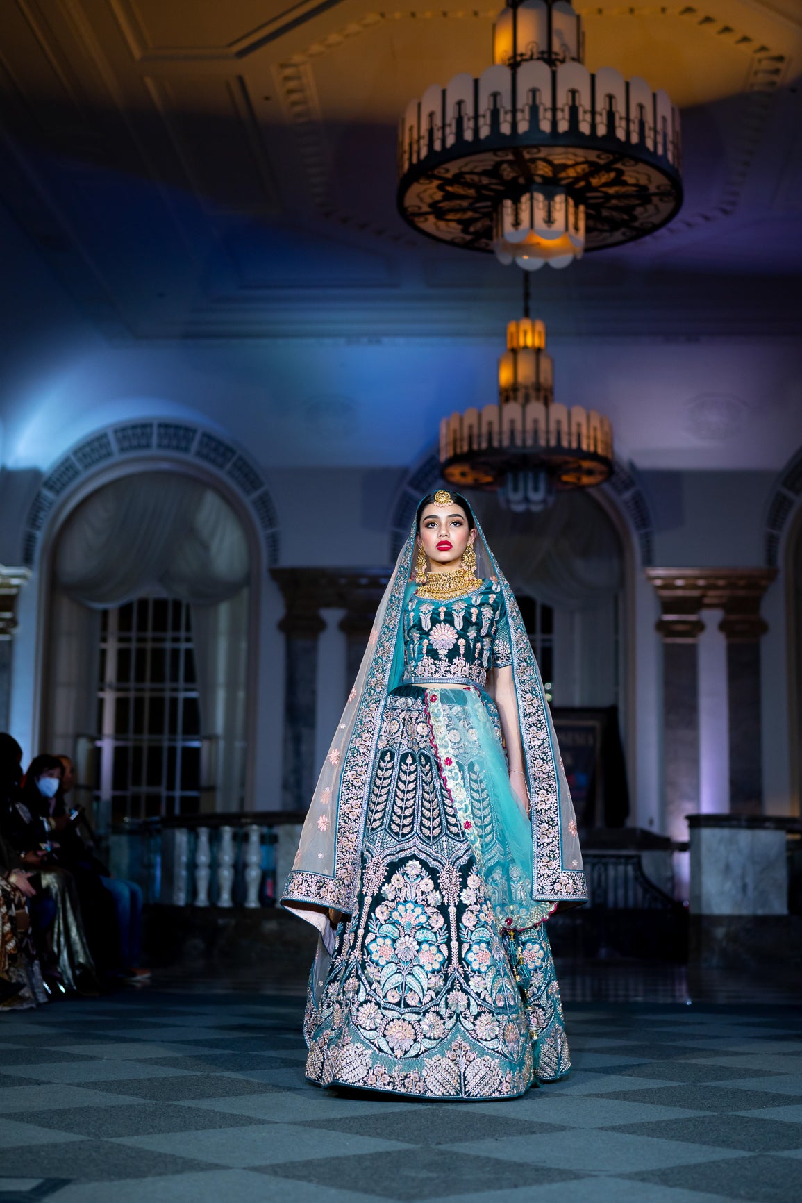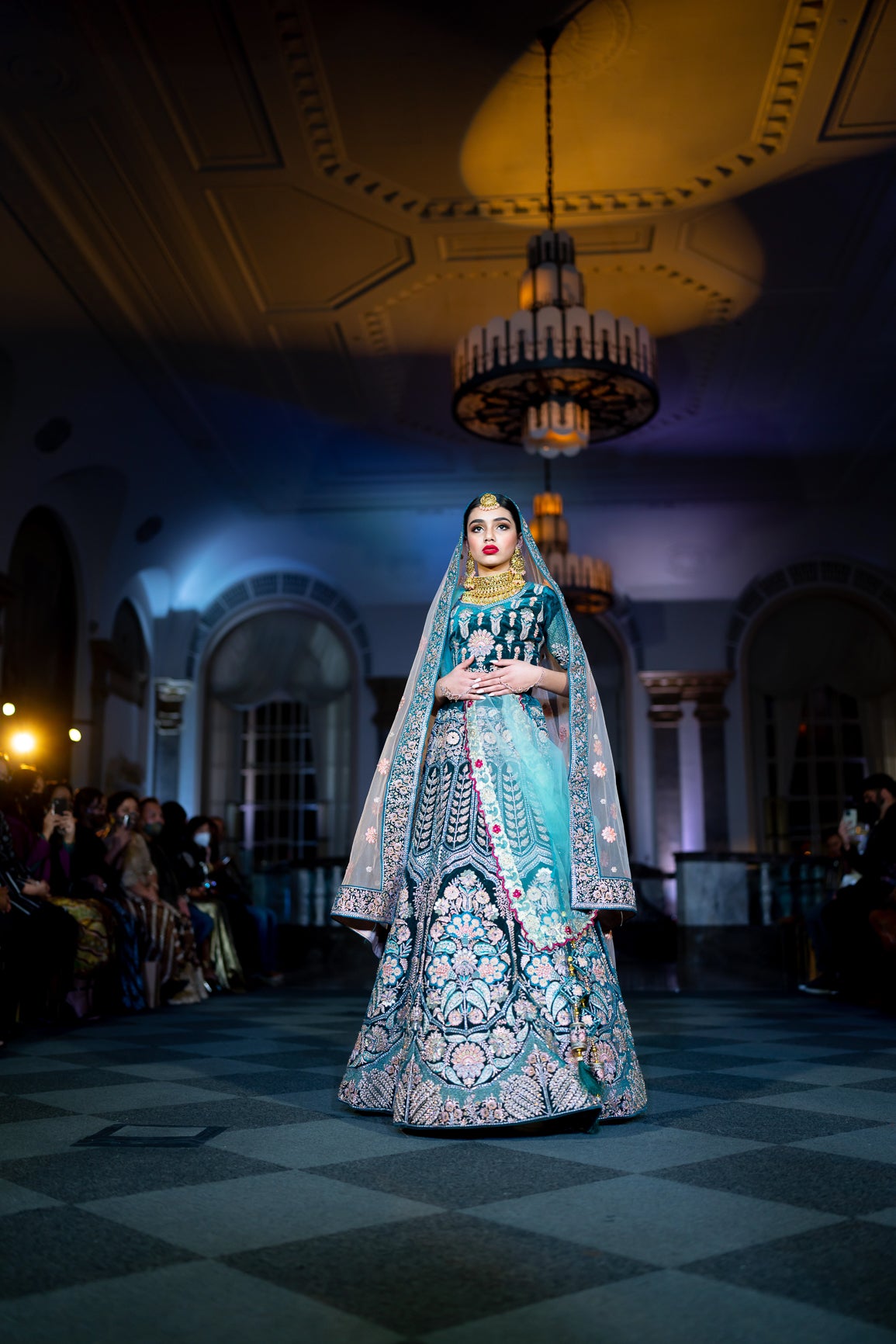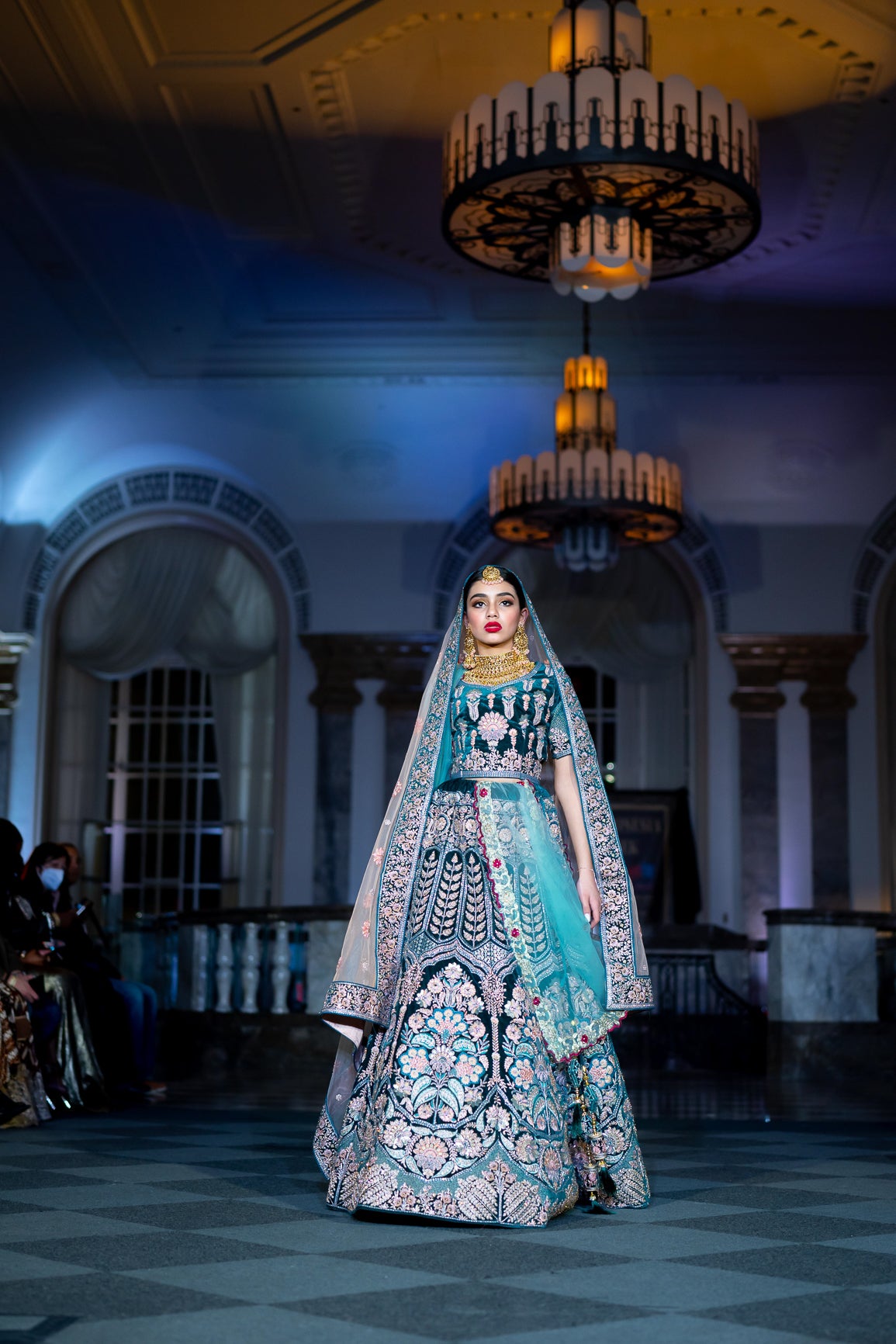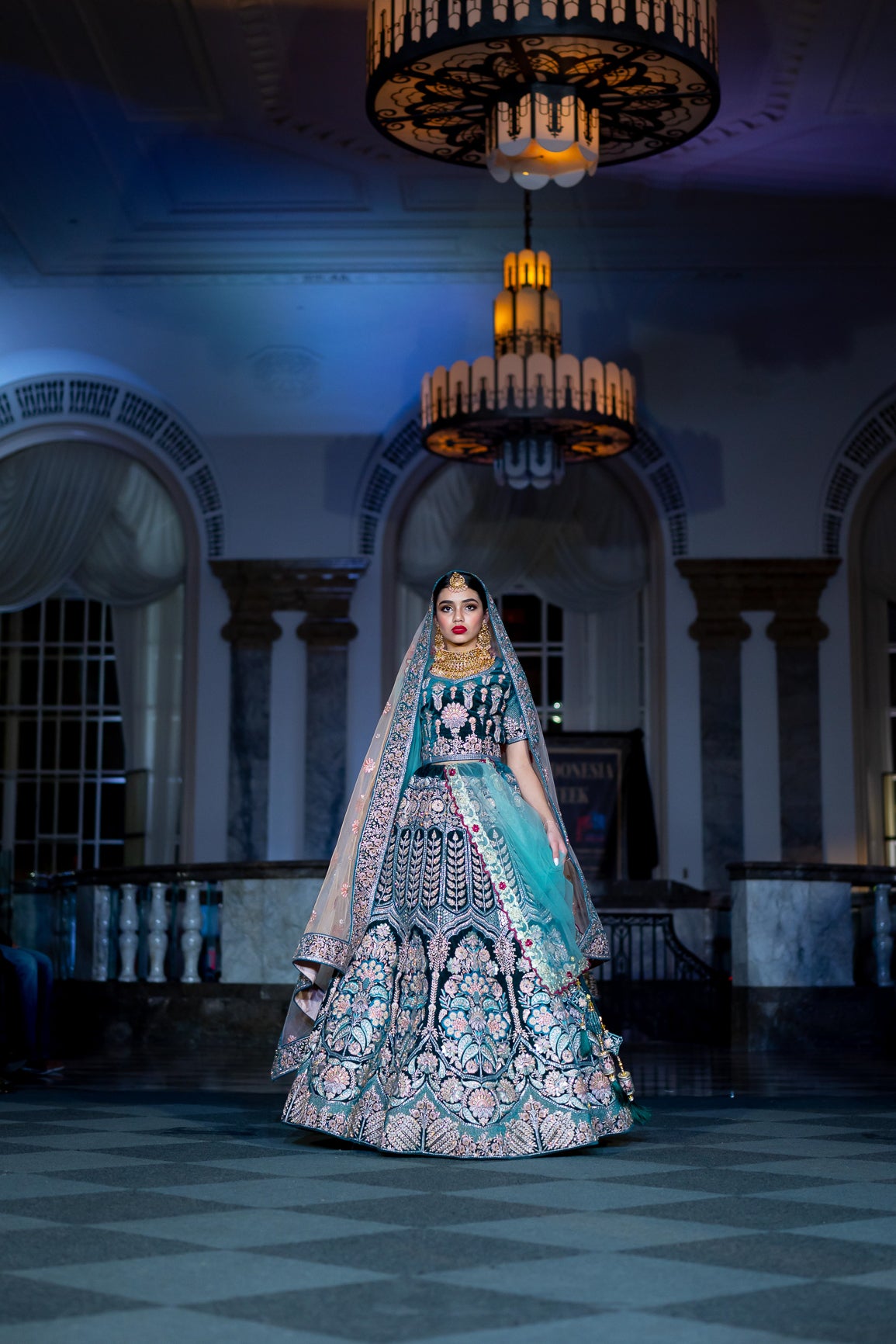 Soft Velvet Peacock Blue Heavy Embroidered Bridal Lehenga Set