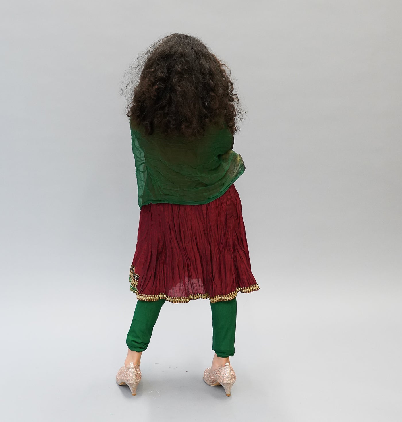 • Comes With Cotton Forest Green Churidaar Pants & Double Shaded Scarf