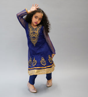 • Handmade Georgette Silk Indigo Blue Embroidered Girl's Salwar Suit