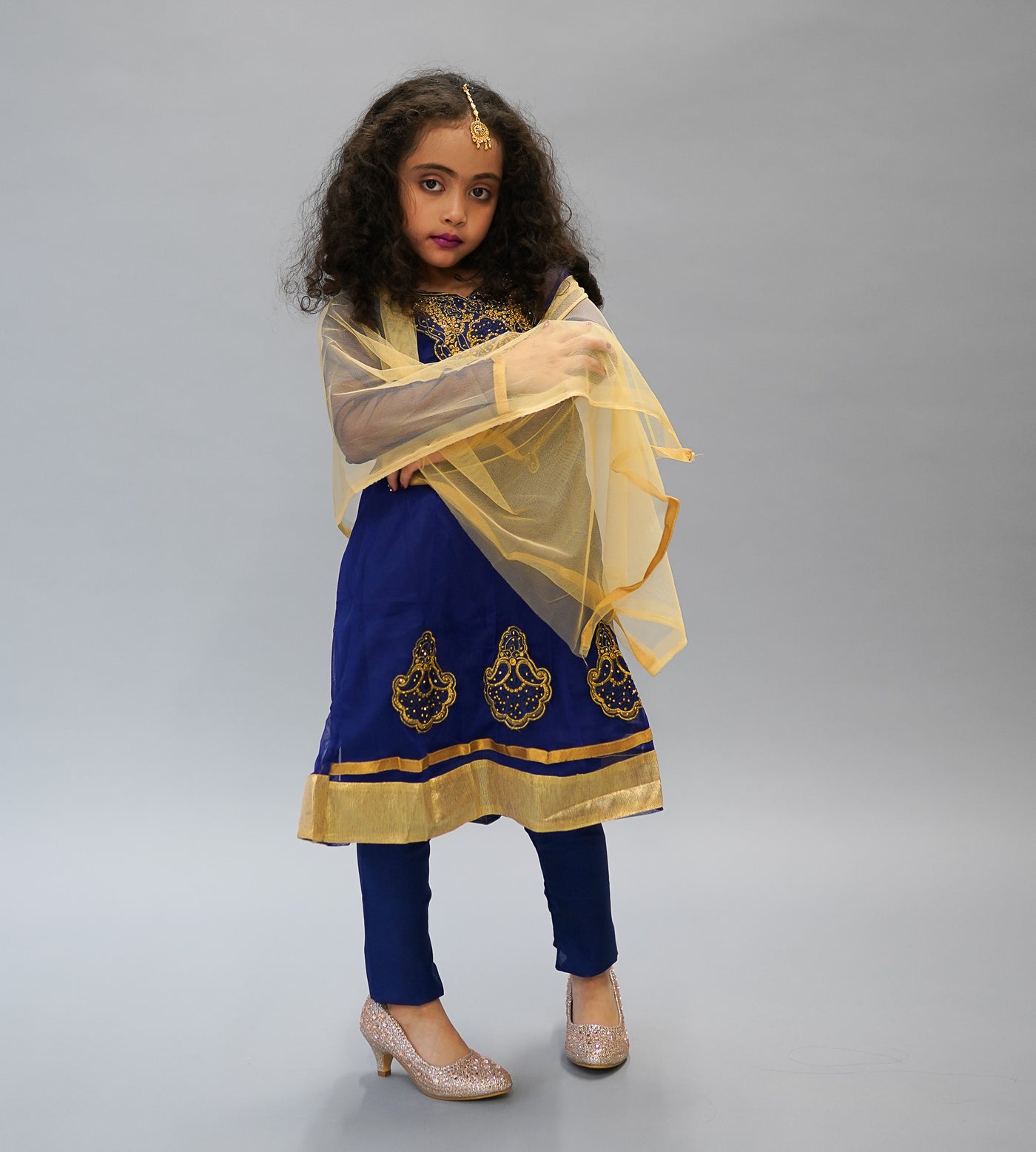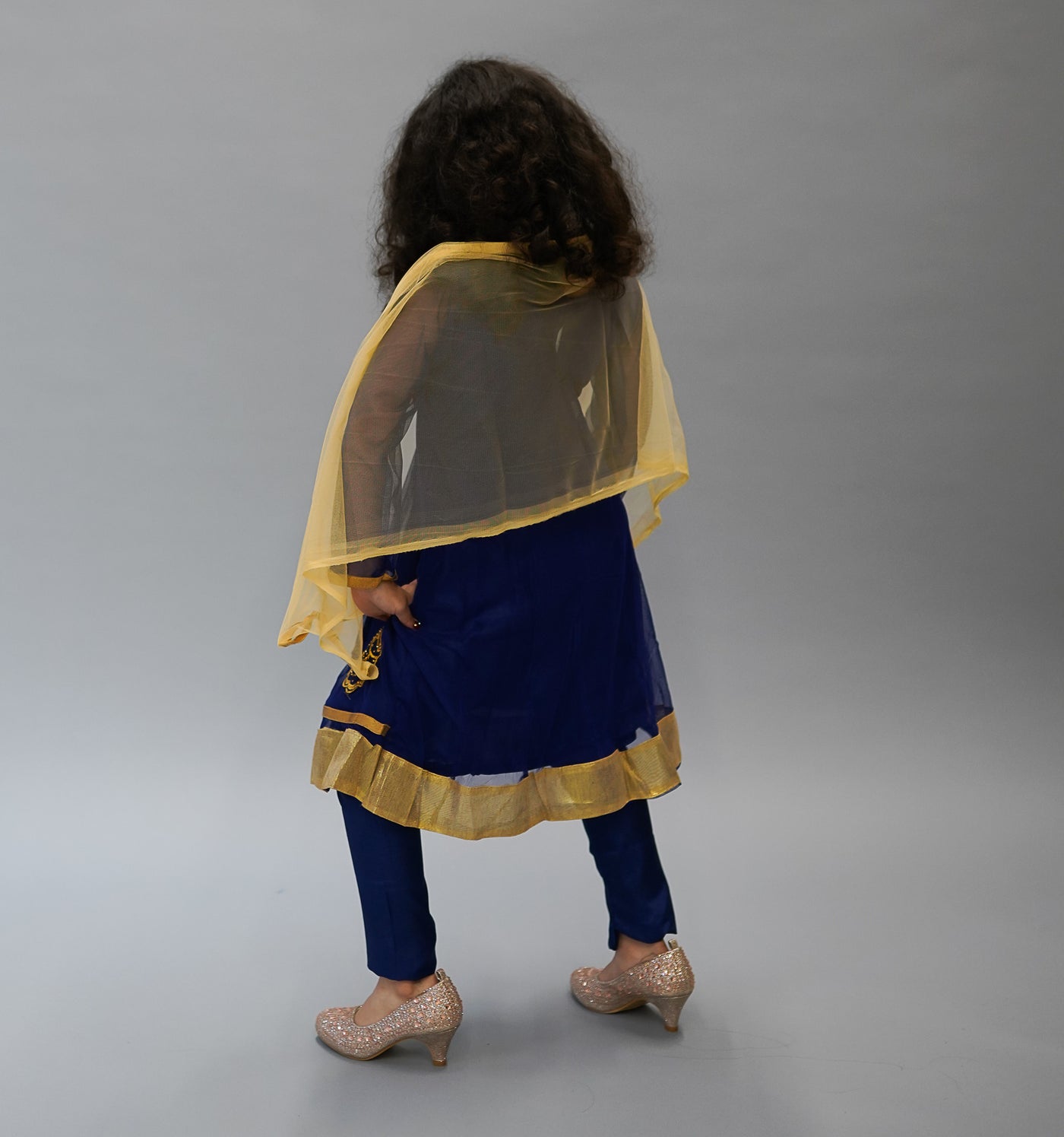 • Comes With Silk Indigo Blue Churidaar Pants & Golden Scarf