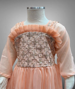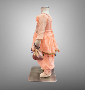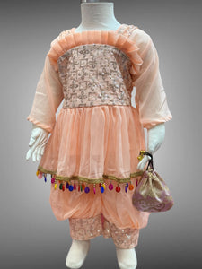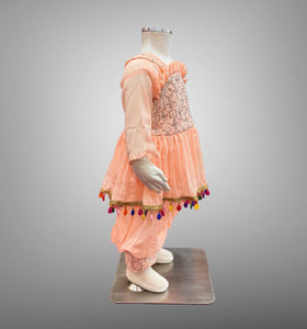 • Handmade Cotton Embroidered Light Peachy Pink Girl's Salwar Suit