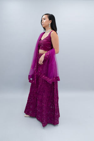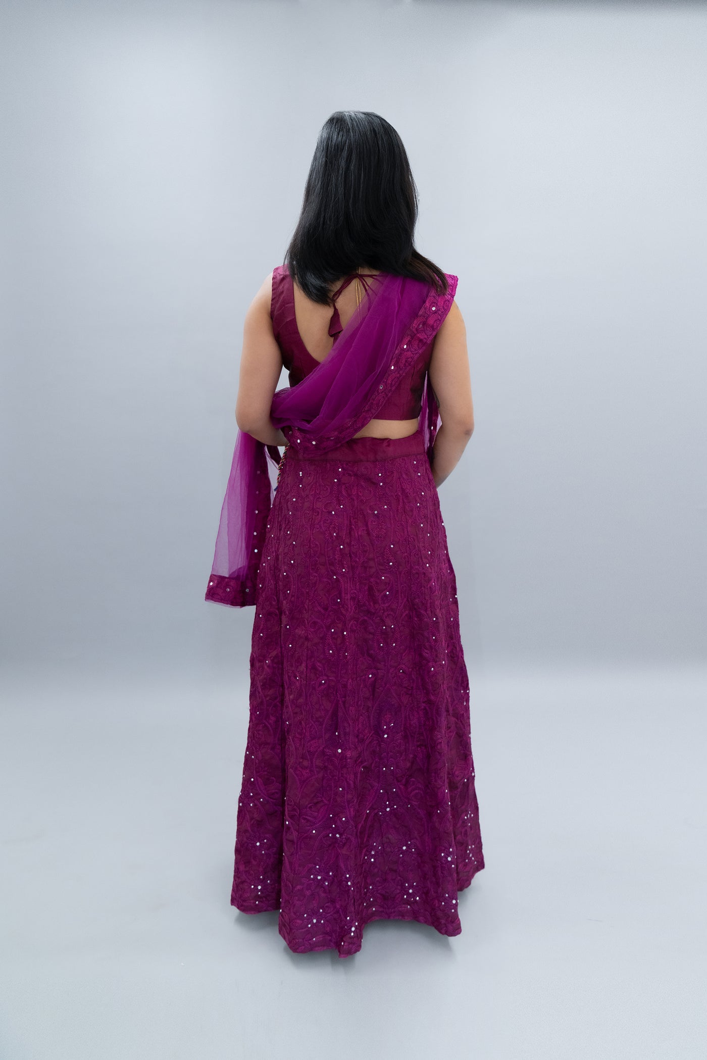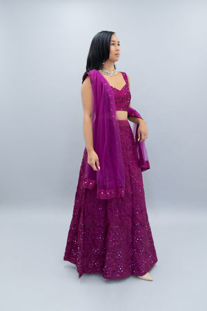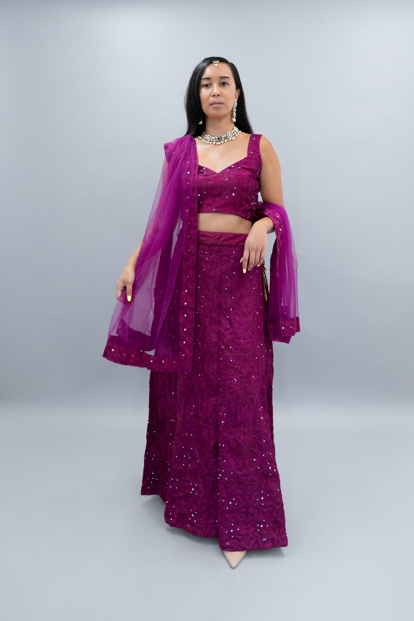 • Handmade Silk  Embroidered Purple Lehenga Set