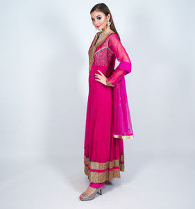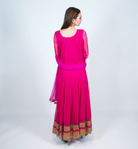 Silk & Net Embroidered Magenta Pink Anarkali Gown