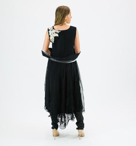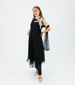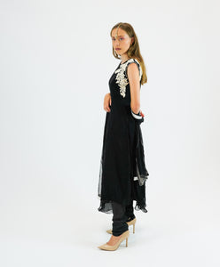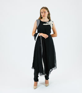 • Handmade Georgette Jet Black Embroidered Anarkali