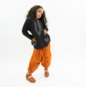 • Handmade Silk Black Embroidered Kurti / Tunic