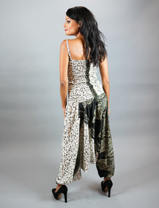 • Handmade Silk Block Printed Pearl White With Black Jumpsuit