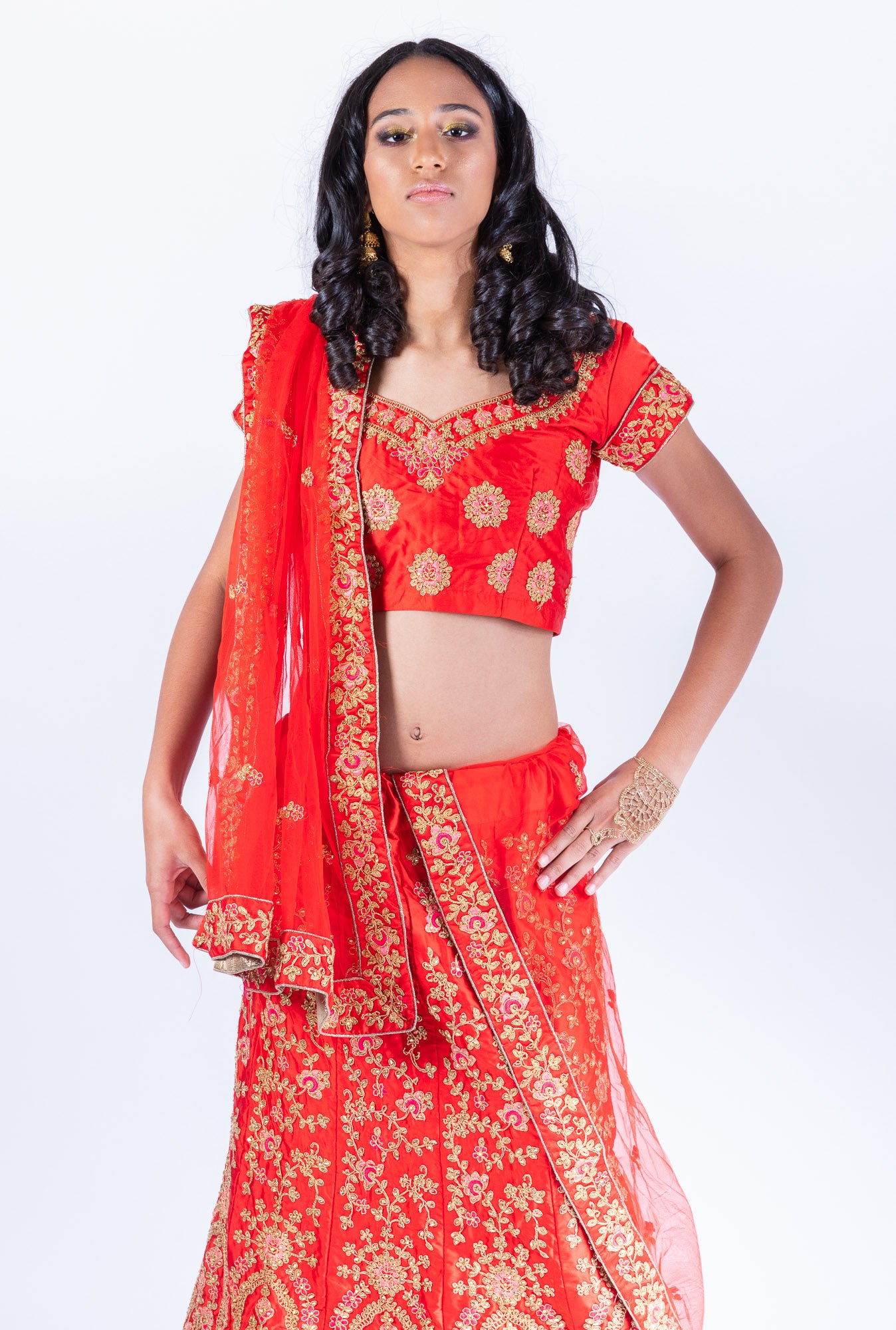 • Comes with Embroidered Net Scarf & Crop Top ( Fit Size 36" Have 2" Margin On Both Sides )