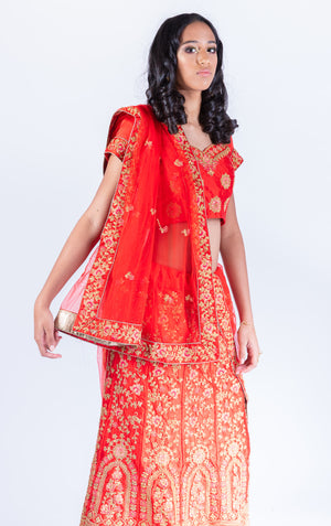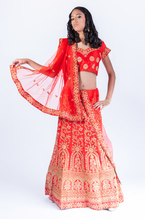 Silk Chili Red Heavy Embroidered Lehenga Set