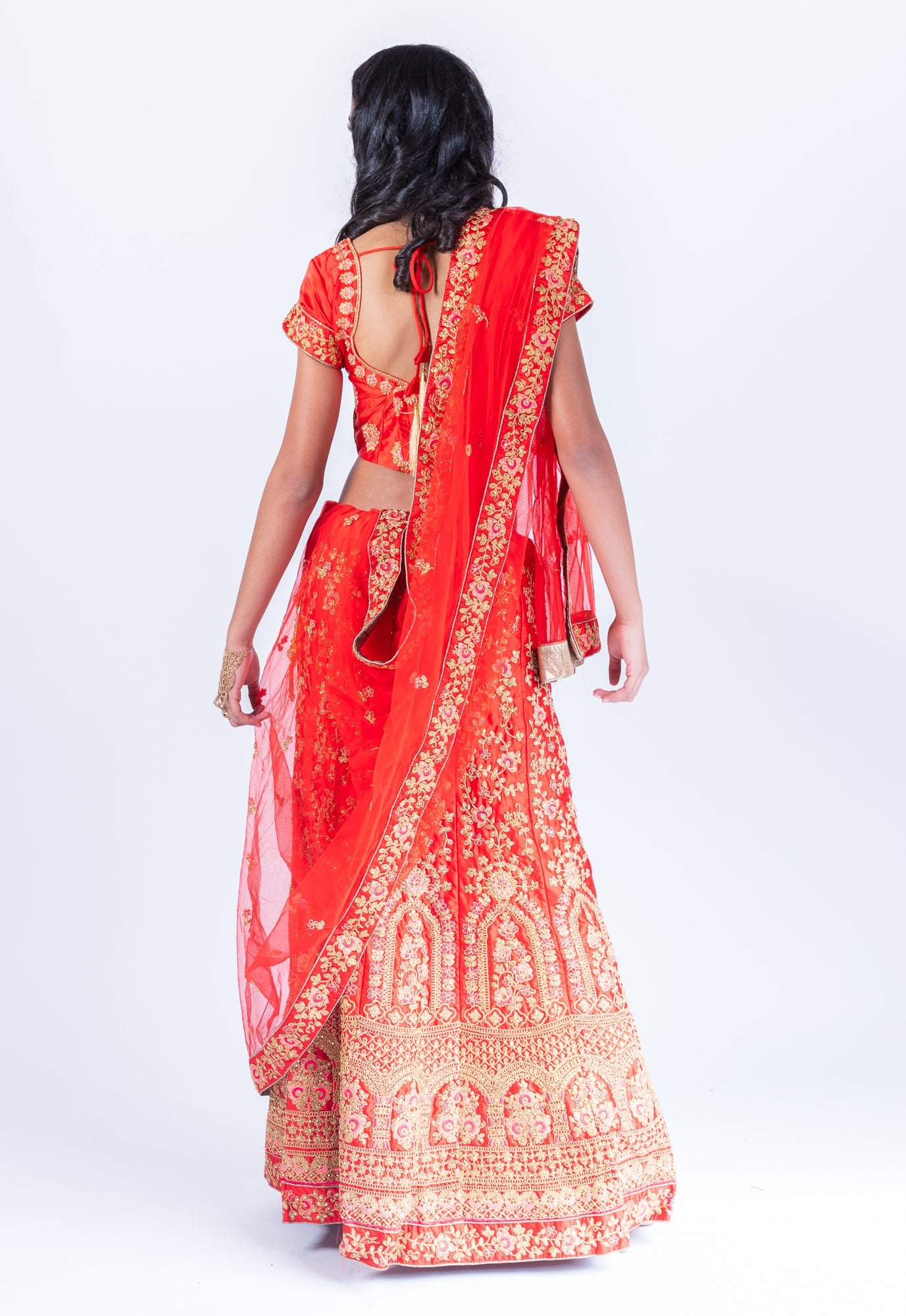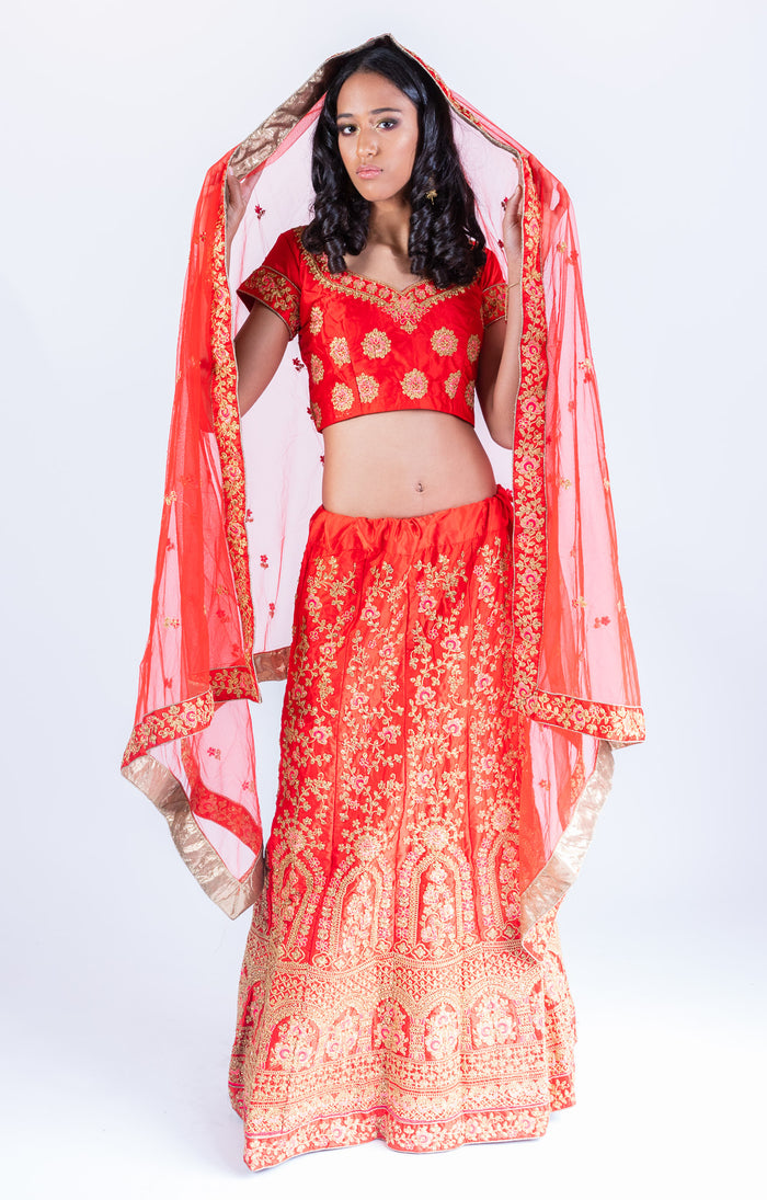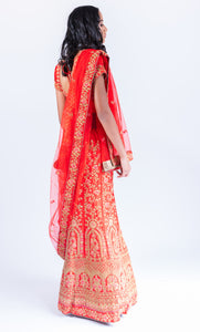 • Handmade Silk Chili Red Heavy Embroidered Lehenga Set