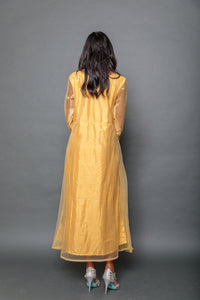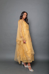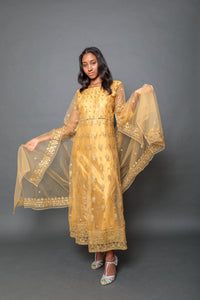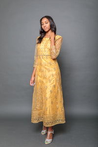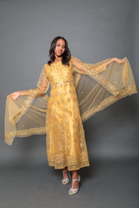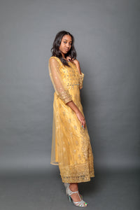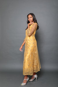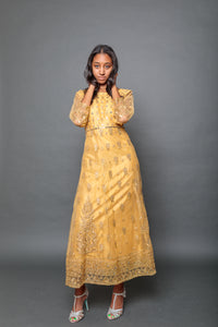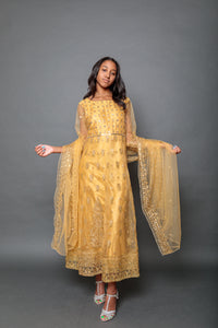 • Handmade Silk Georgette Gold Embroidered With Mirrors Gown