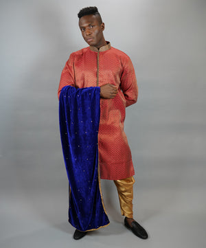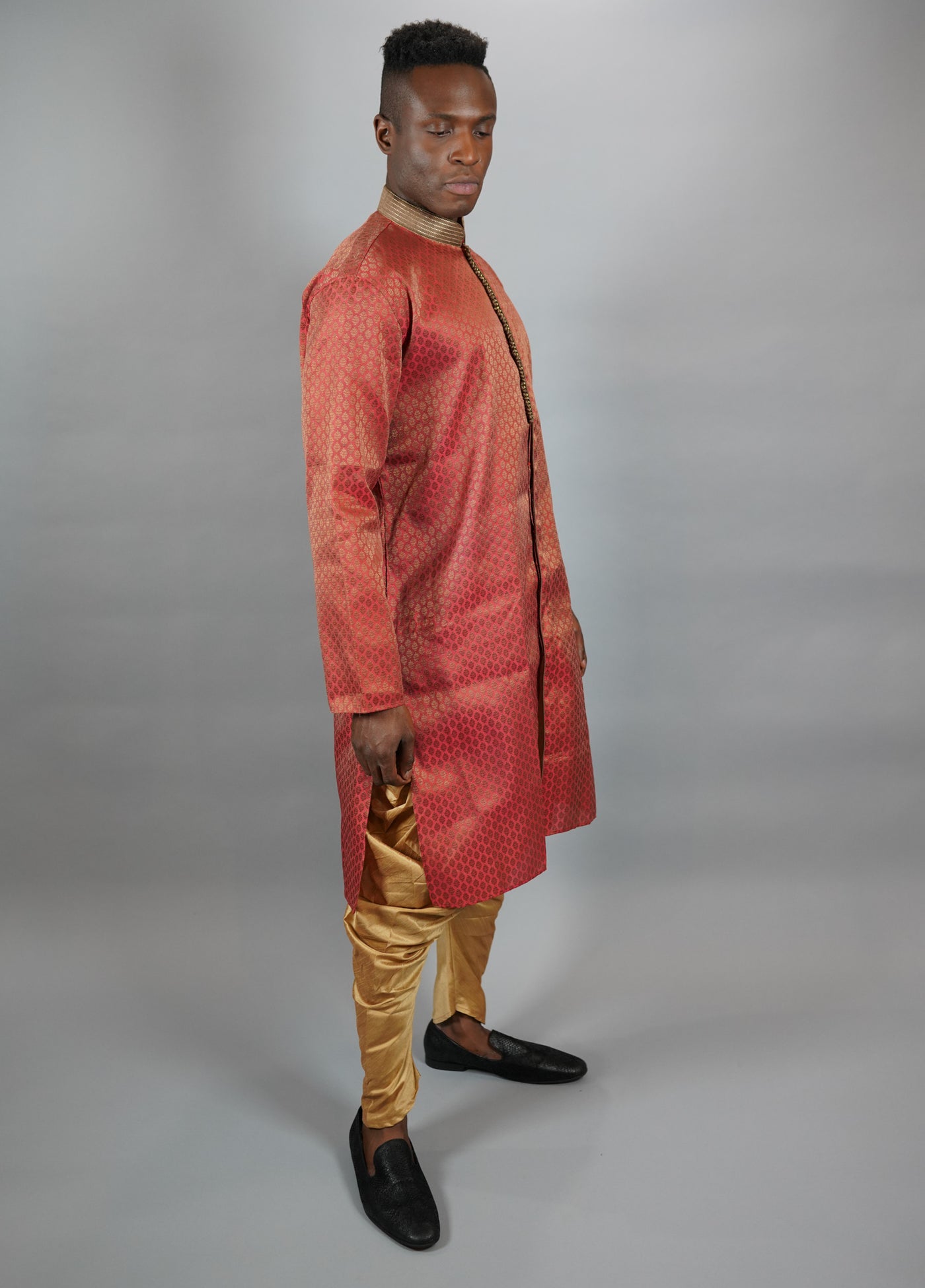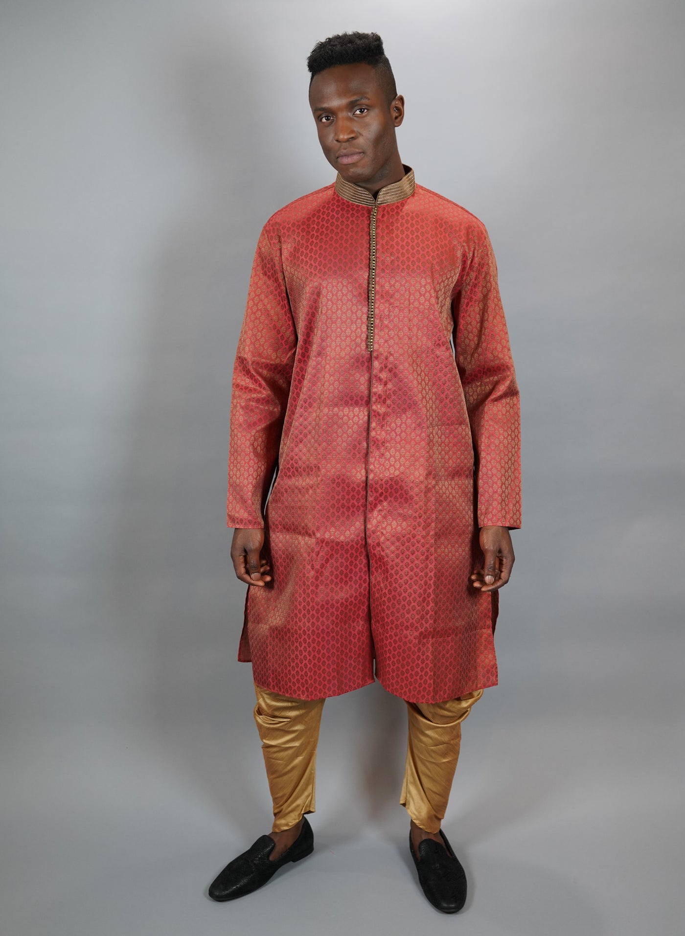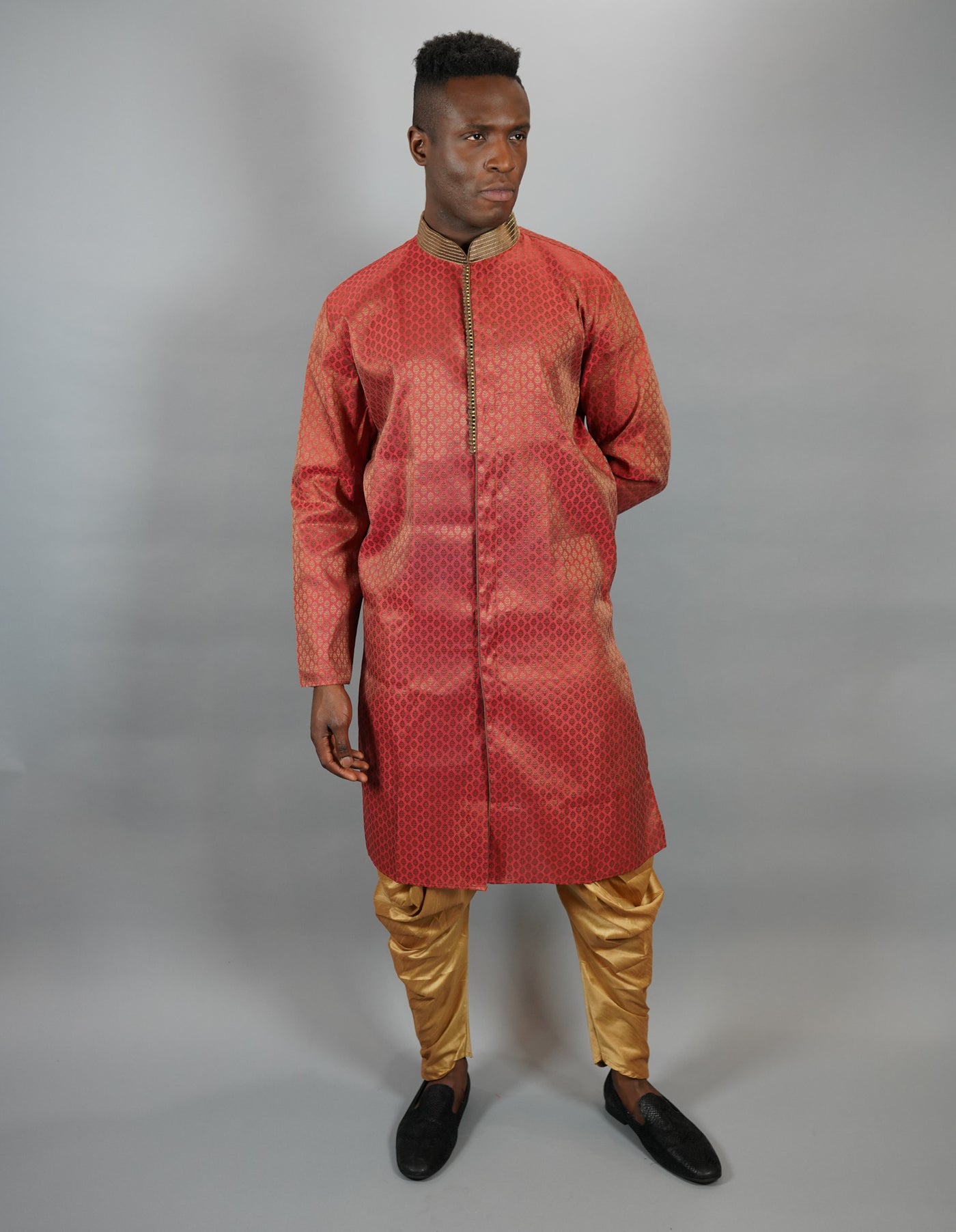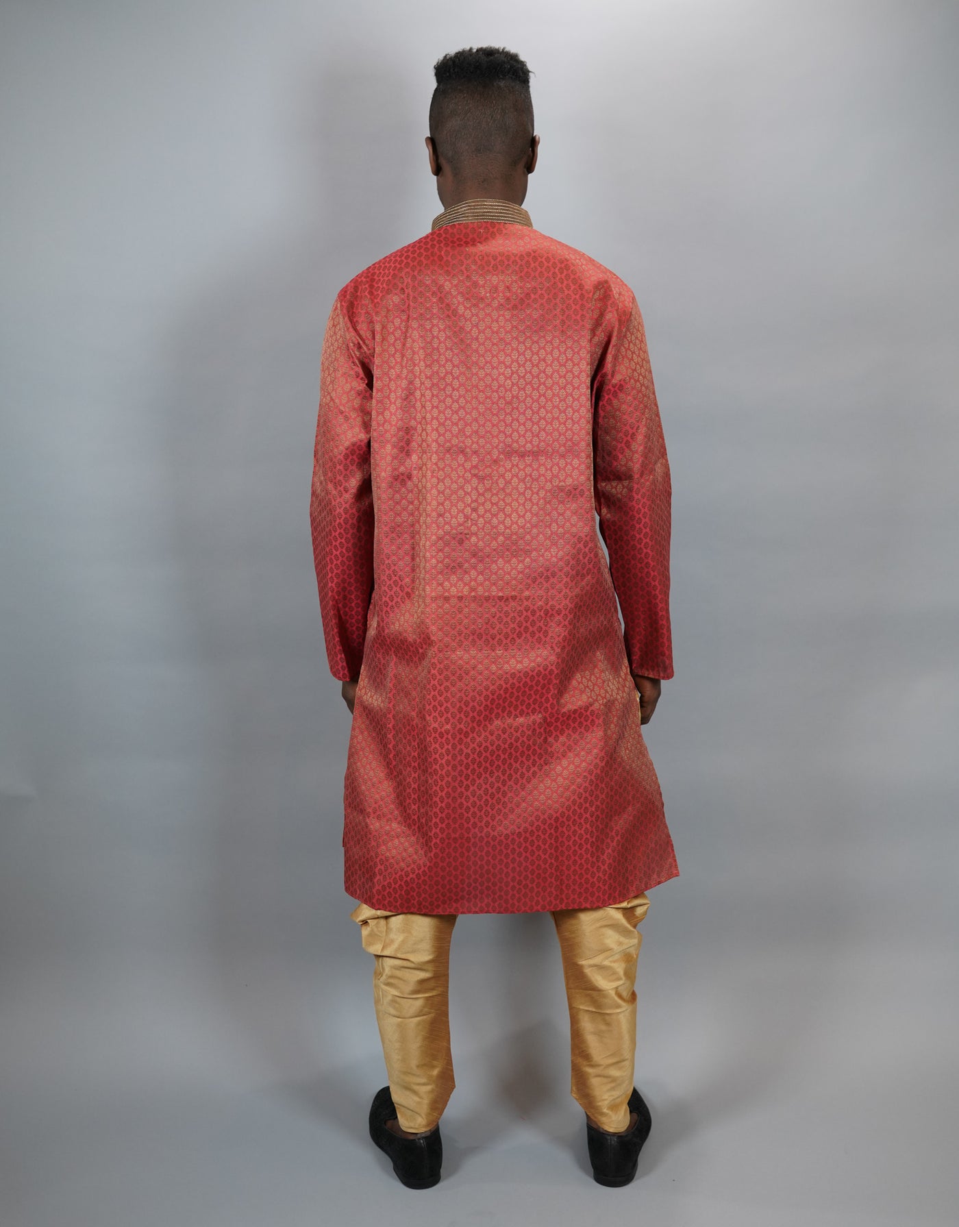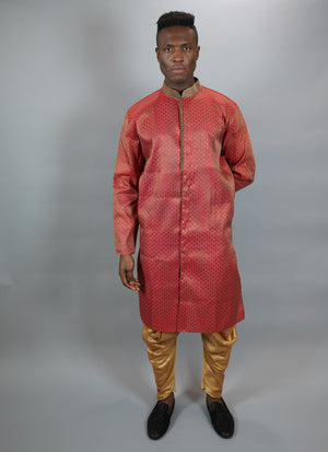 • Handmade Silk Vermillion Red All Button Down Men's Kurta