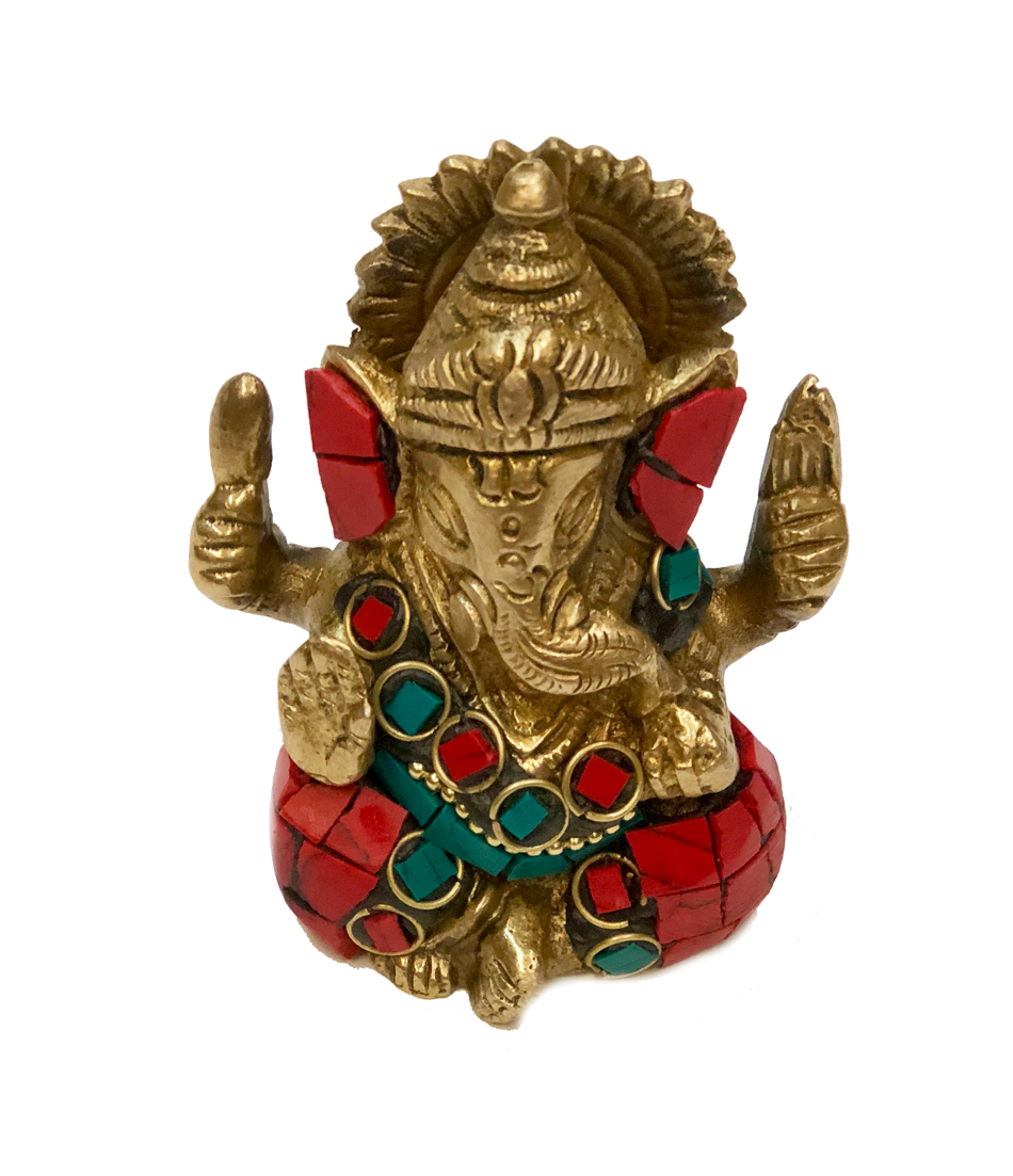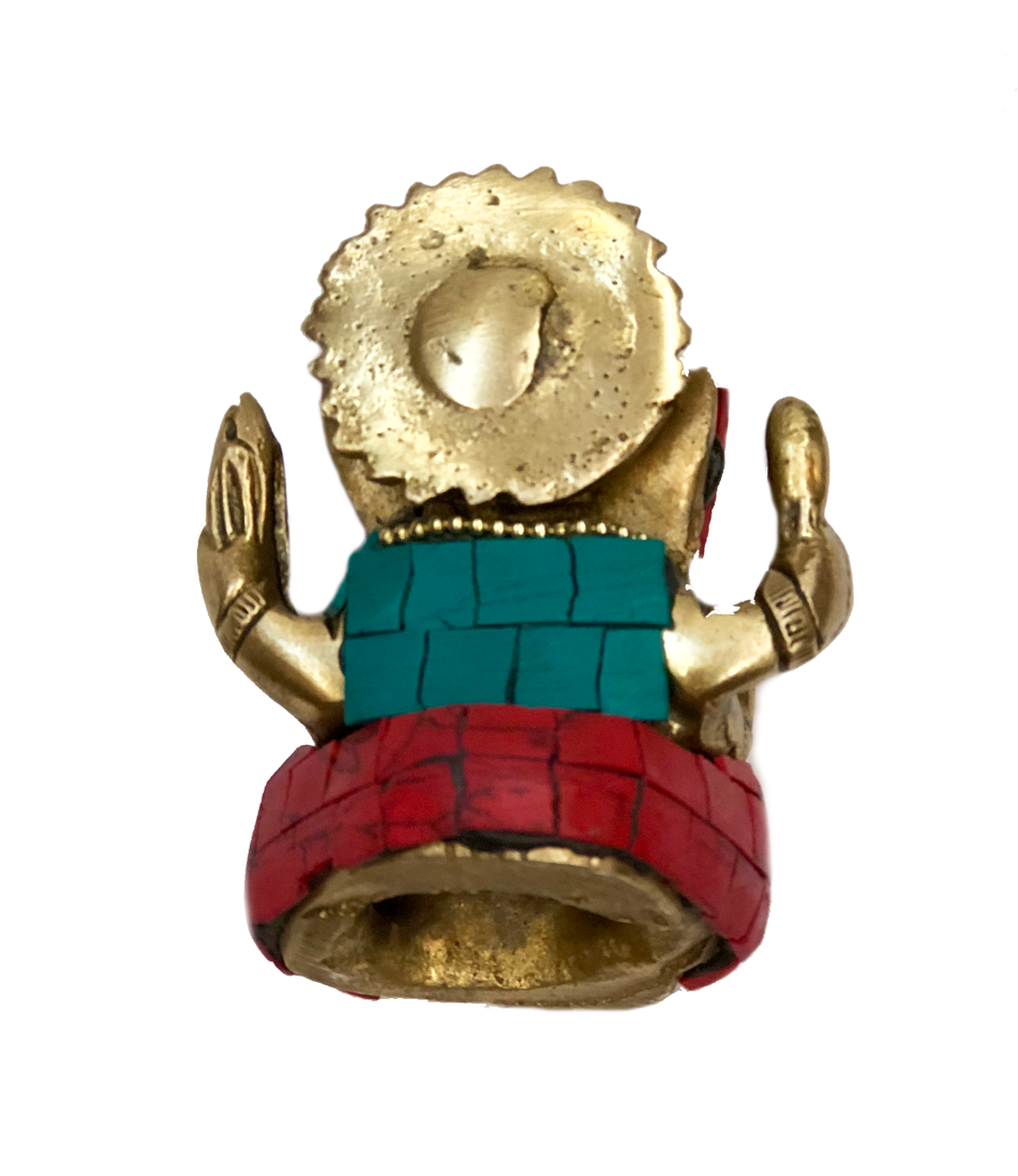 • Brass Ganesha Turquoise and Coral Mosaic Idol