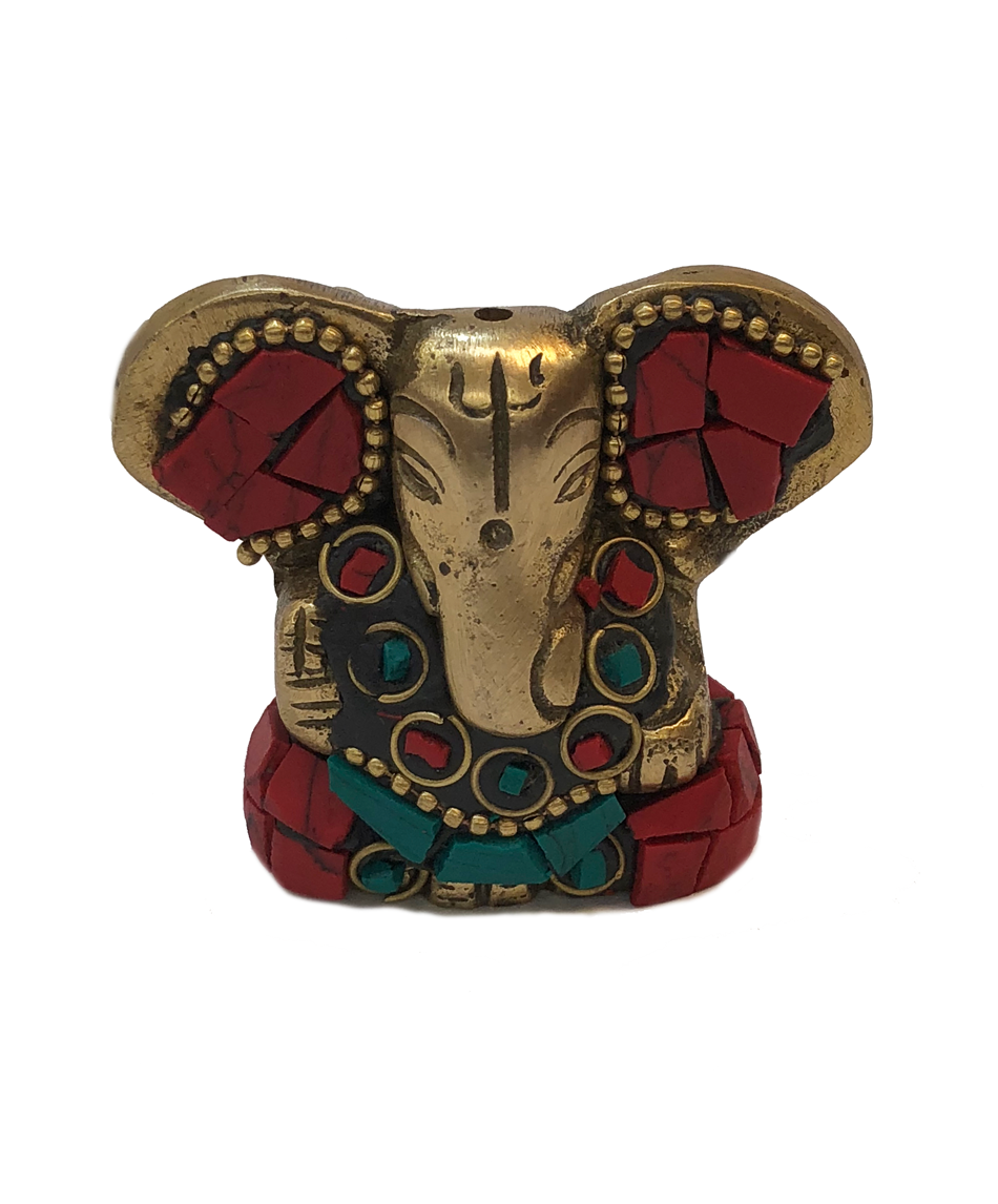 • Brass Ganesha Turquoise and Coral Mosaic Idol