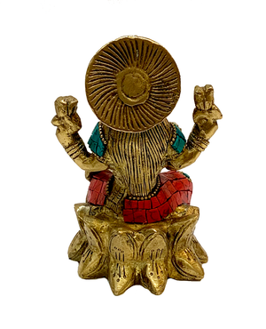 •  Laxmi Turquoise and Coral Mosaic Idol on Brass