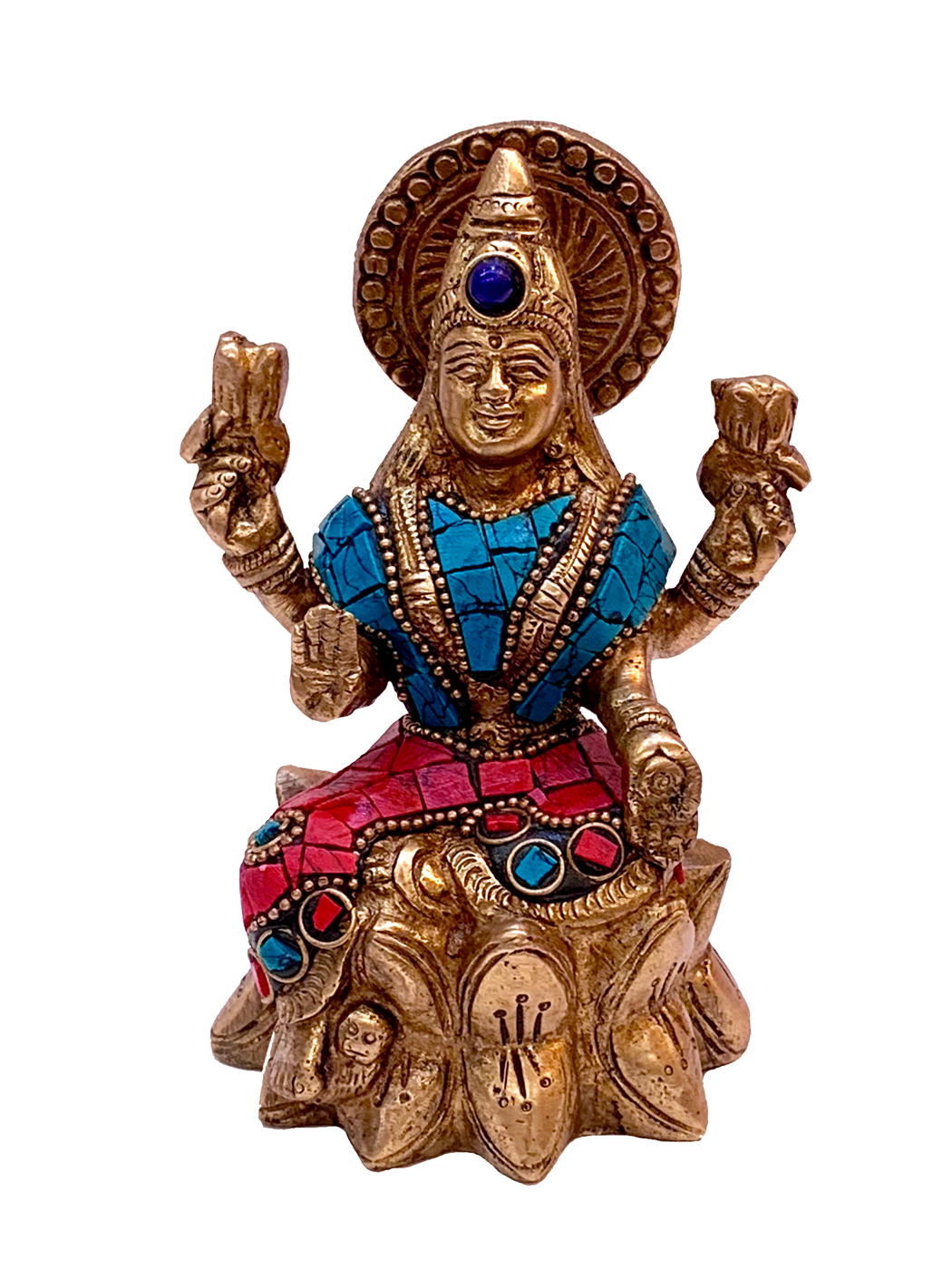 Brass Laxmi Turquoise And Coral Mosaic Statue