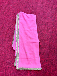 • Handmade Chiffon Midnight Blue With Mukesh work All Over Gold Border Scarf