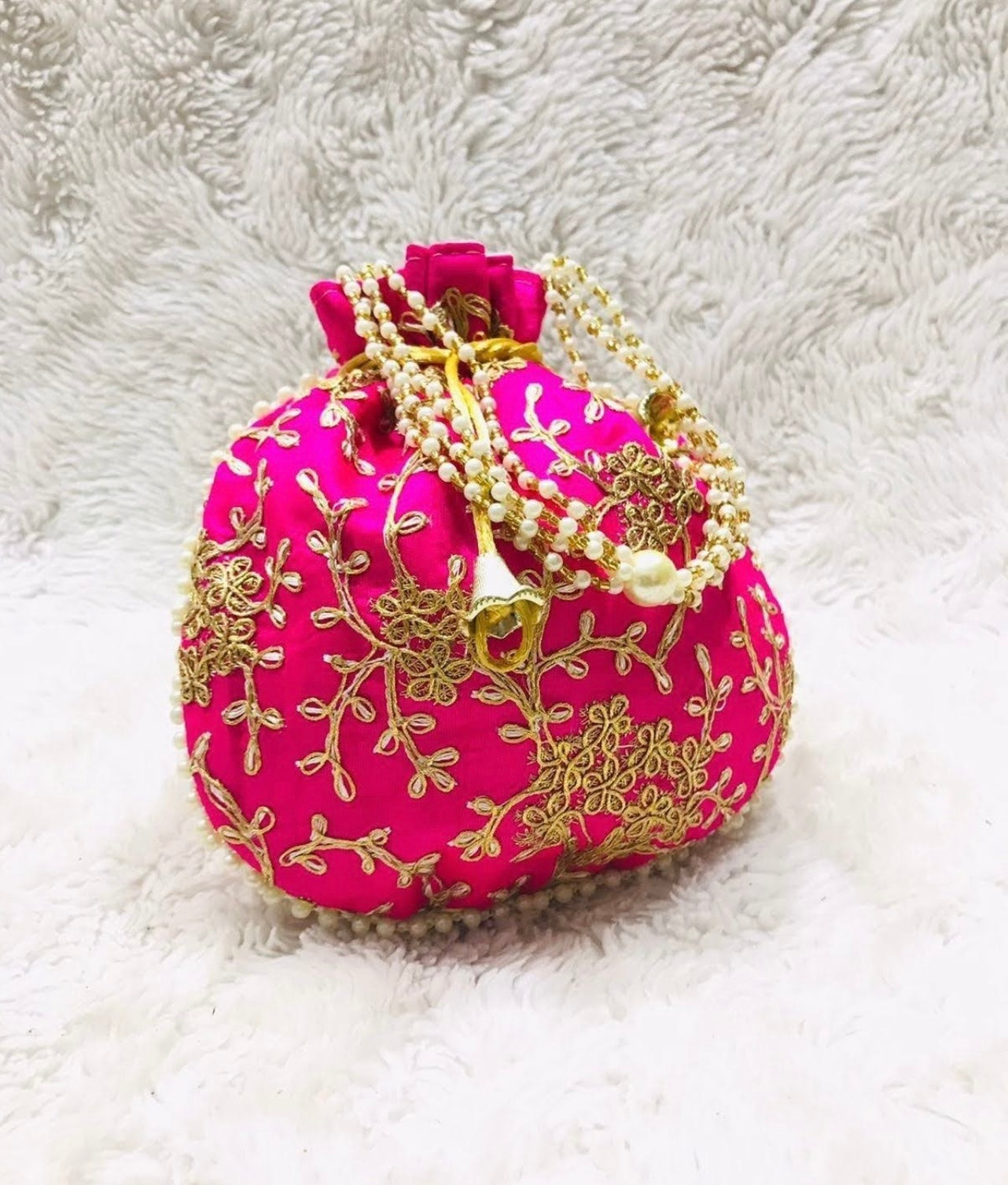 • Fuchsia pink with Gold Embroidery Potli Bag