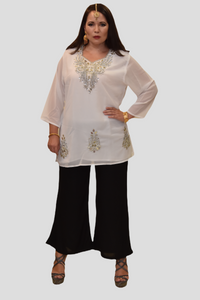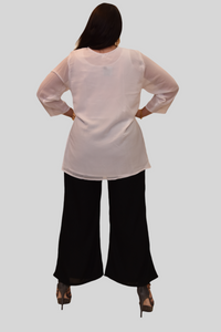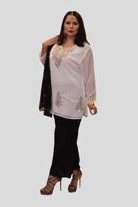 • Handmade Cotton Chiffon Kelly Moore White Embroidered Short Kurti