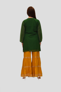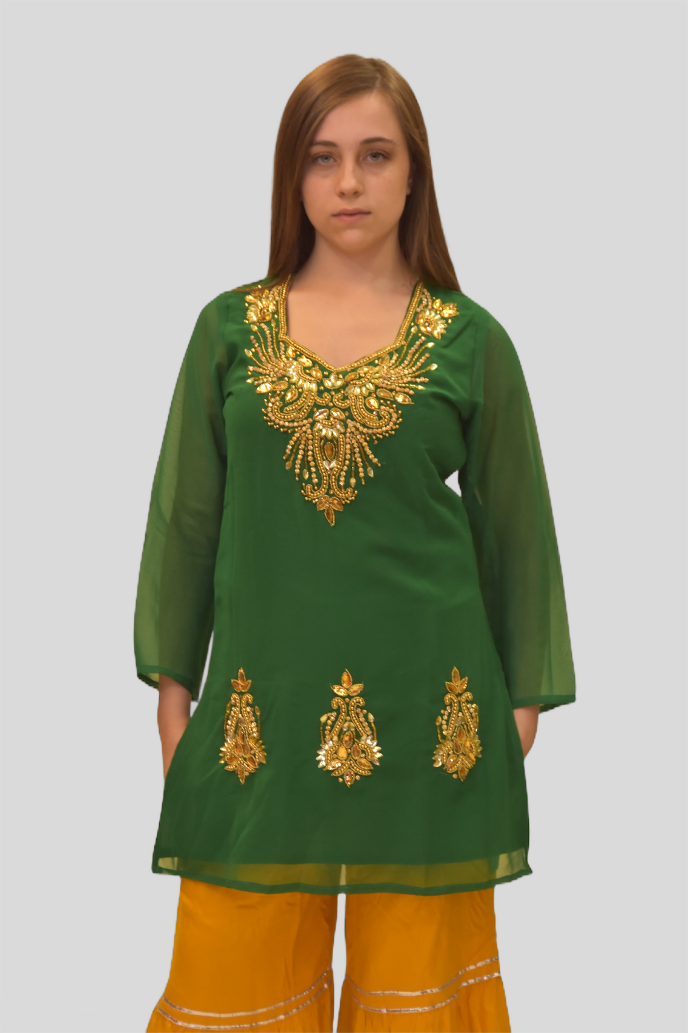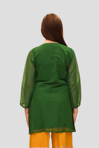 • Handmade Cotton Chiffon Emerald Green Embroidered Tunic
