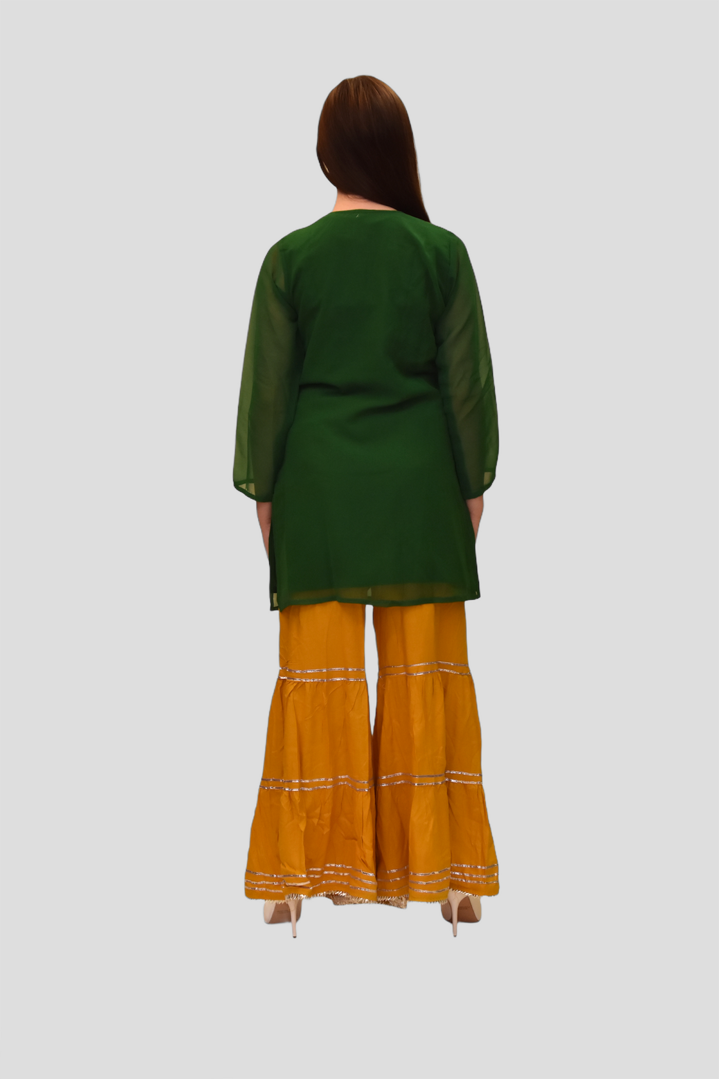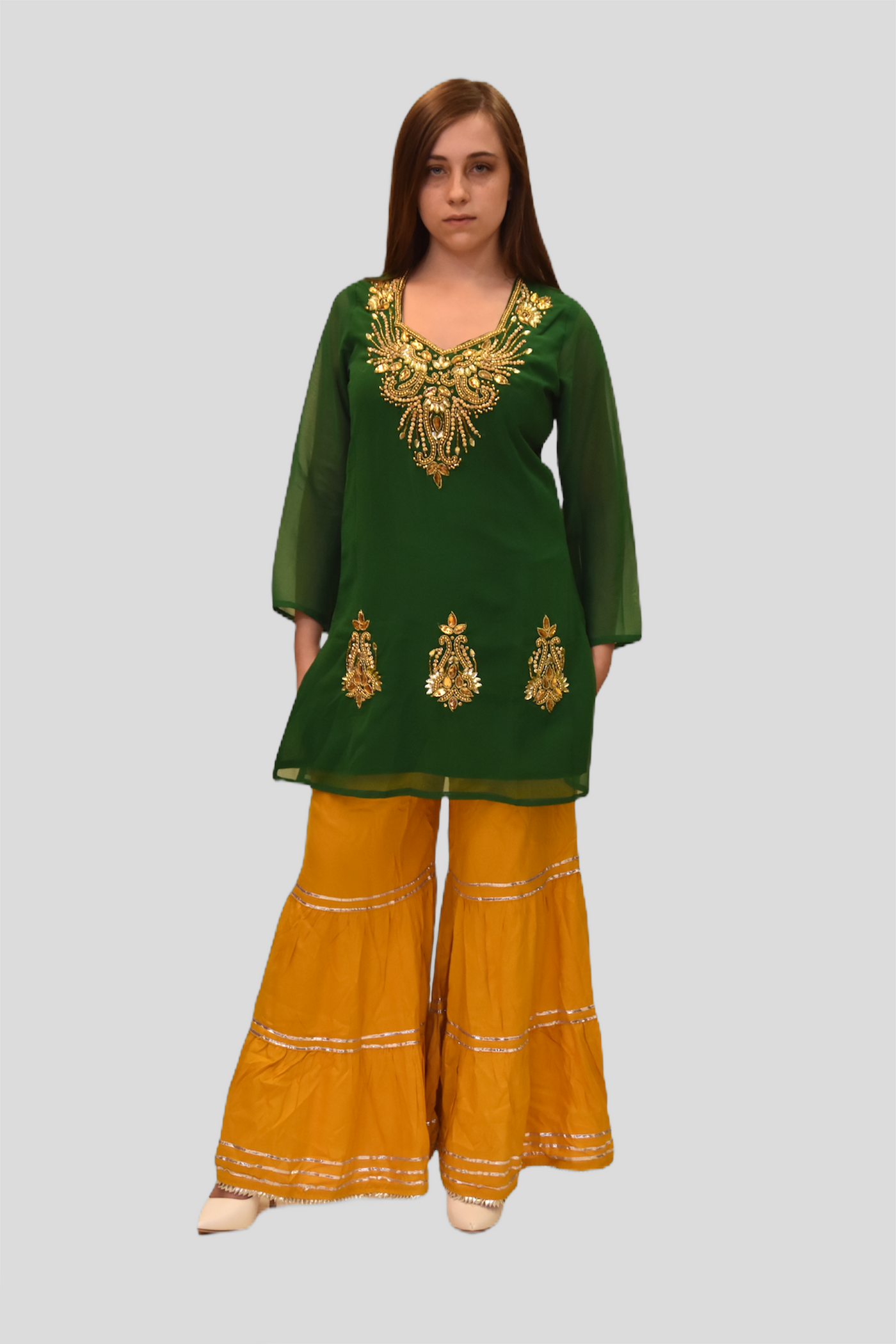 • Model Is Wearing  Gold Sharara Pants & Scarf Sold Separately