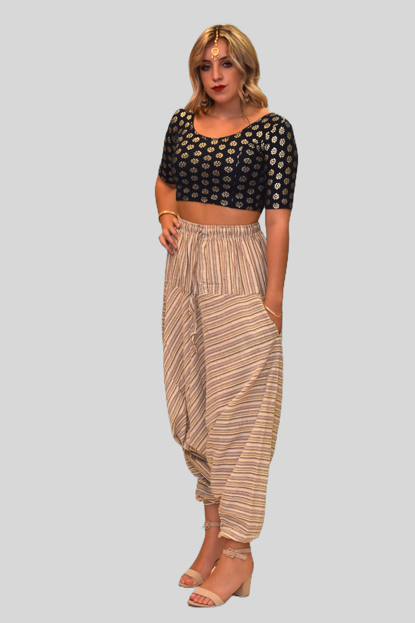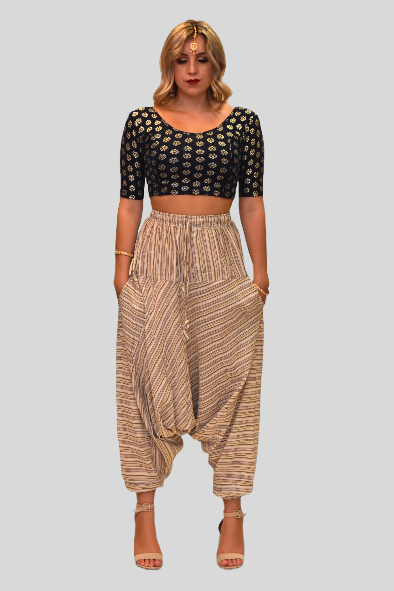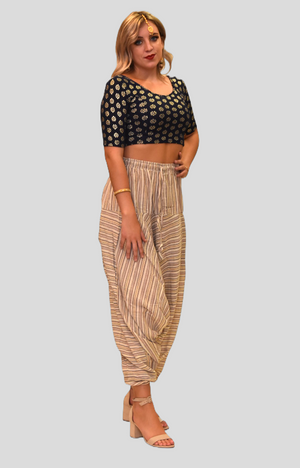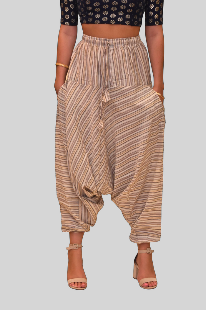 • Handmade Cotton Walnut Cream Striped Harem pants