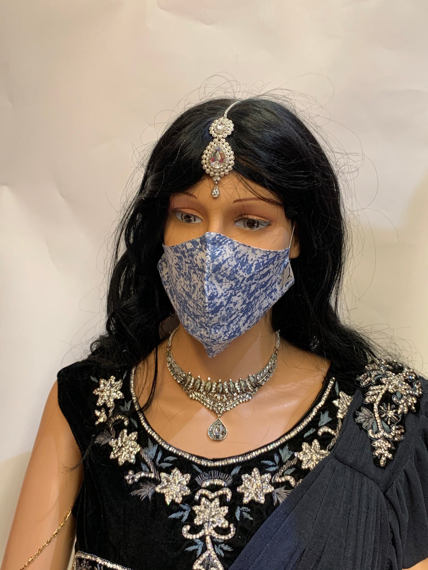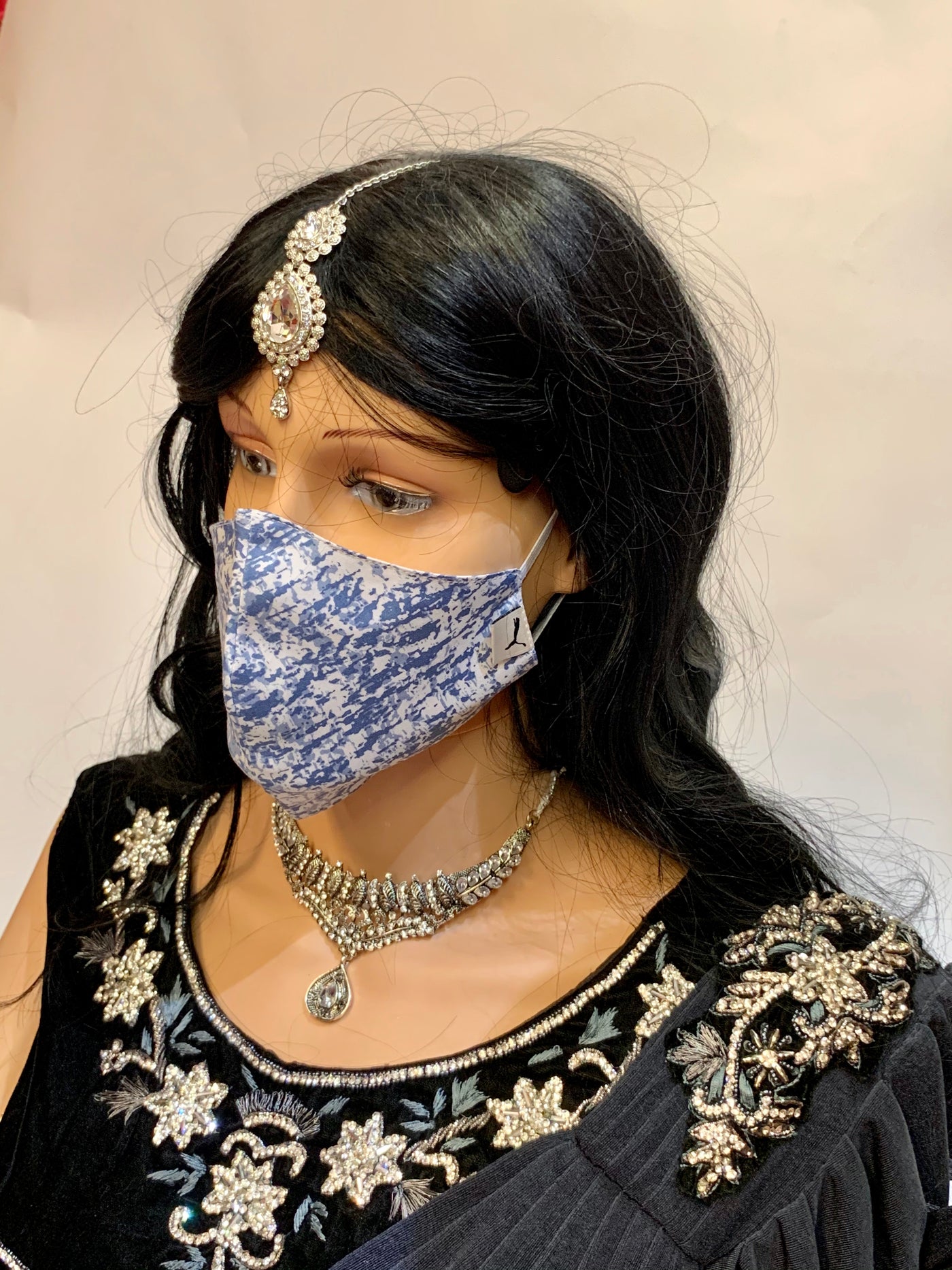•  Designer Unisex Blue On White Printed cloth Face Masks.