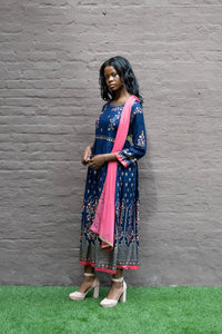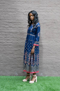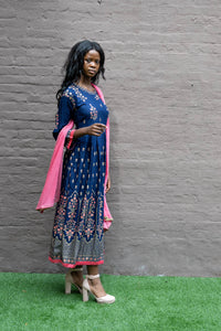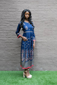 • Handmade Cotton Block Printed Navy Blue Gown