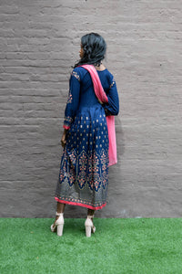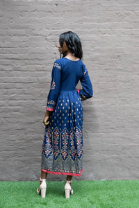 Cotton Block Printed Navy Blue Gown