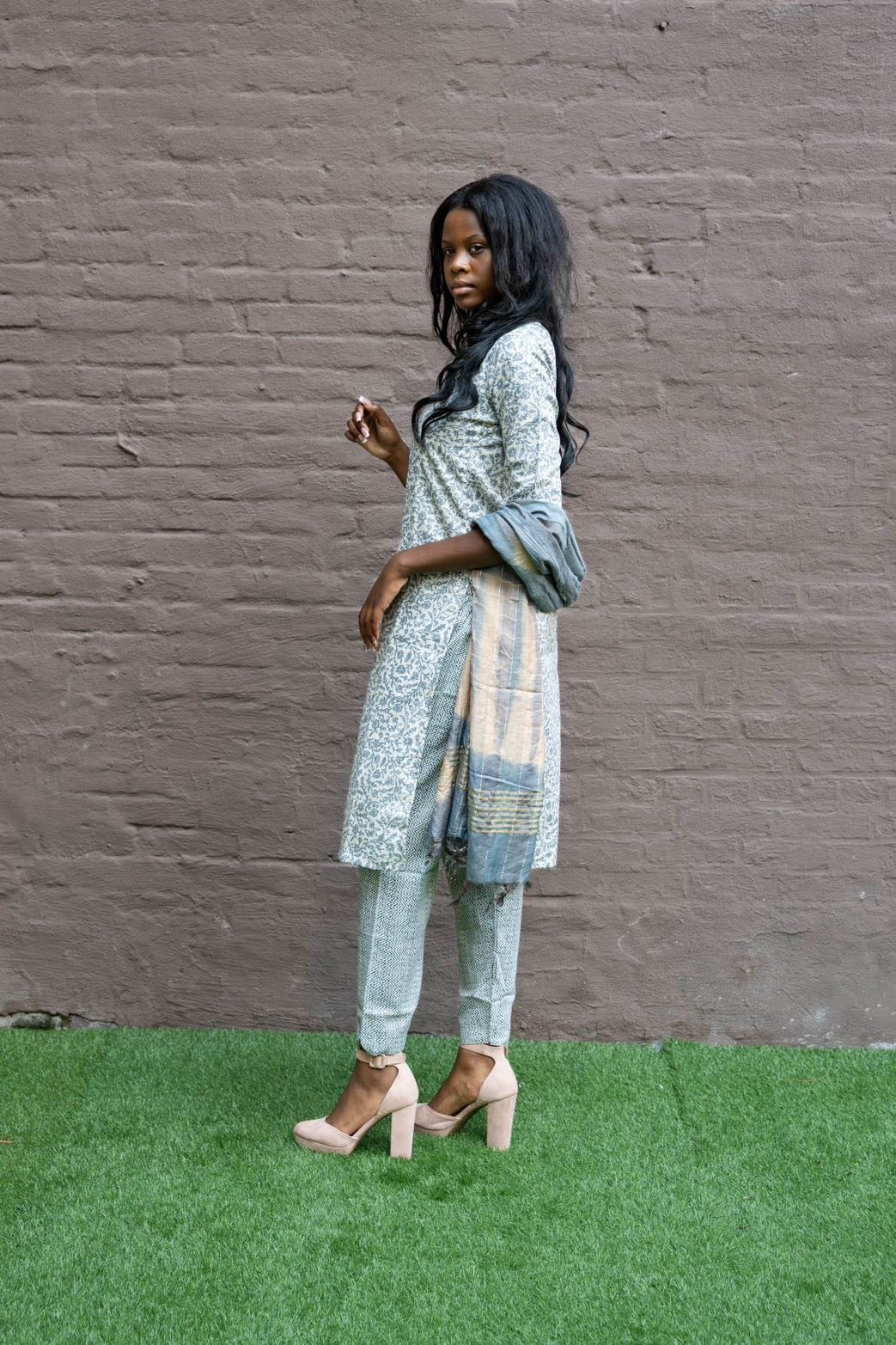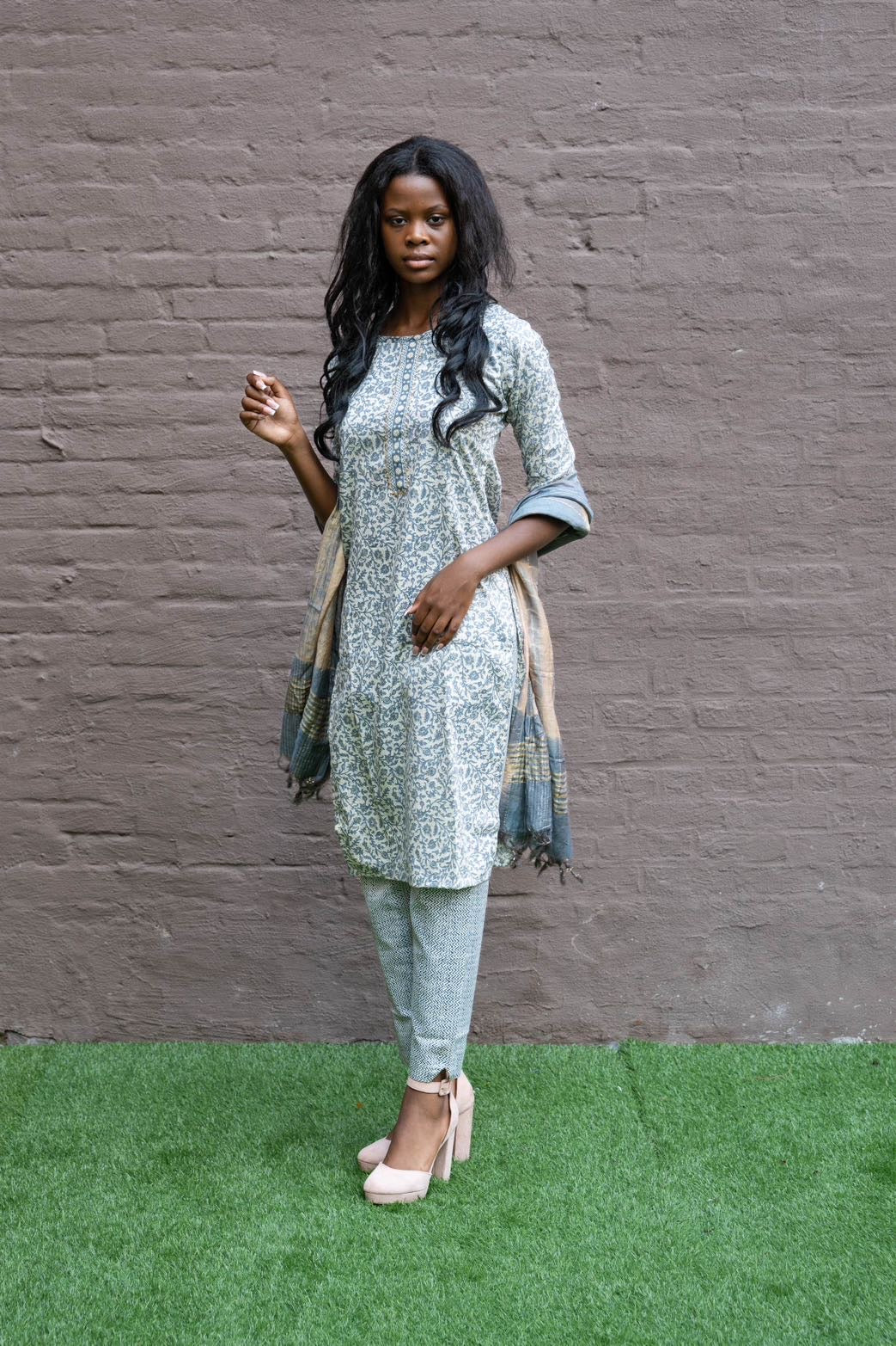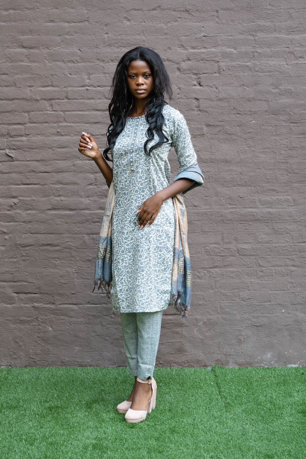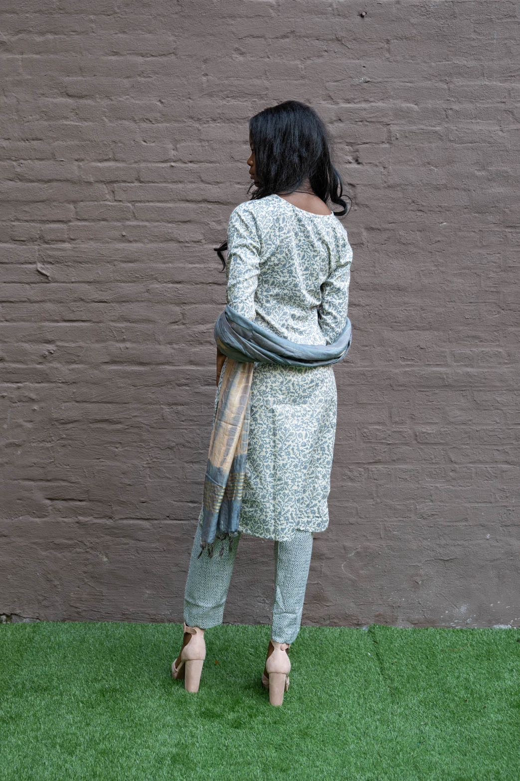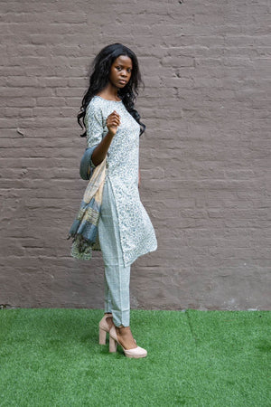 • Handmade Cotton Printed Light Bluish Grey Salwar Kameez Set