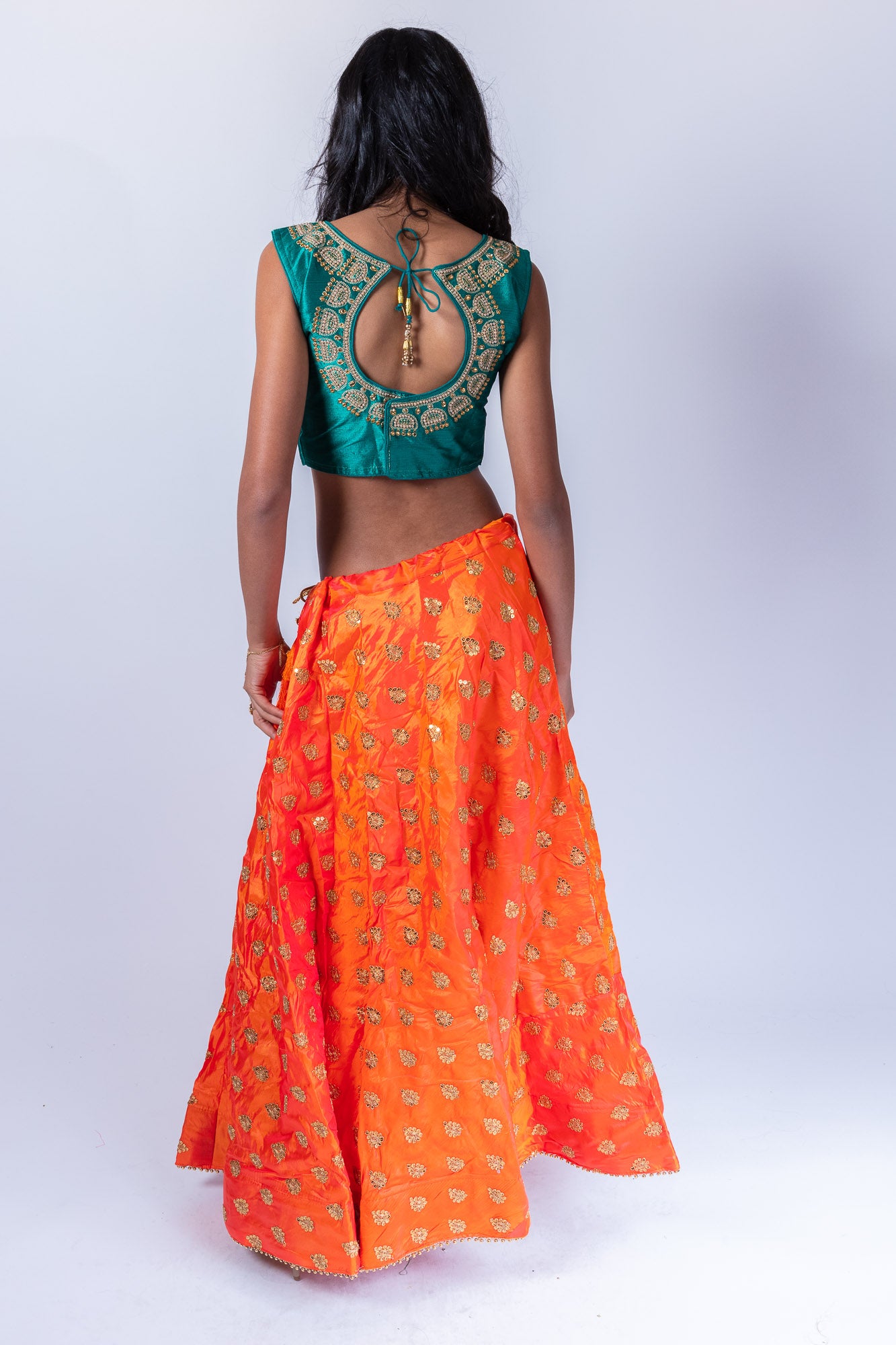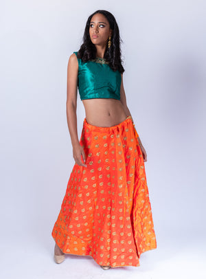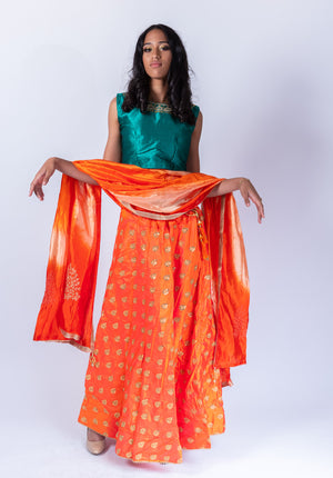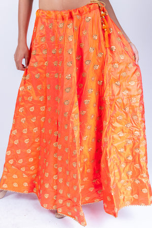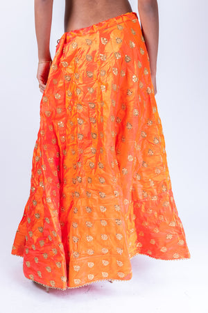 • Handmade  Silk Tiger Orange Embroidered Lehenga Skirt