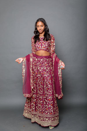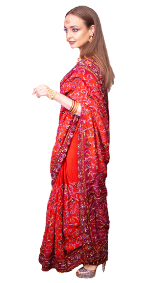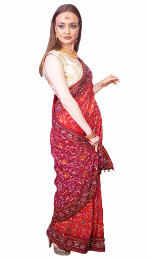 • Handmade maroon Georgette saree with gold embroidery