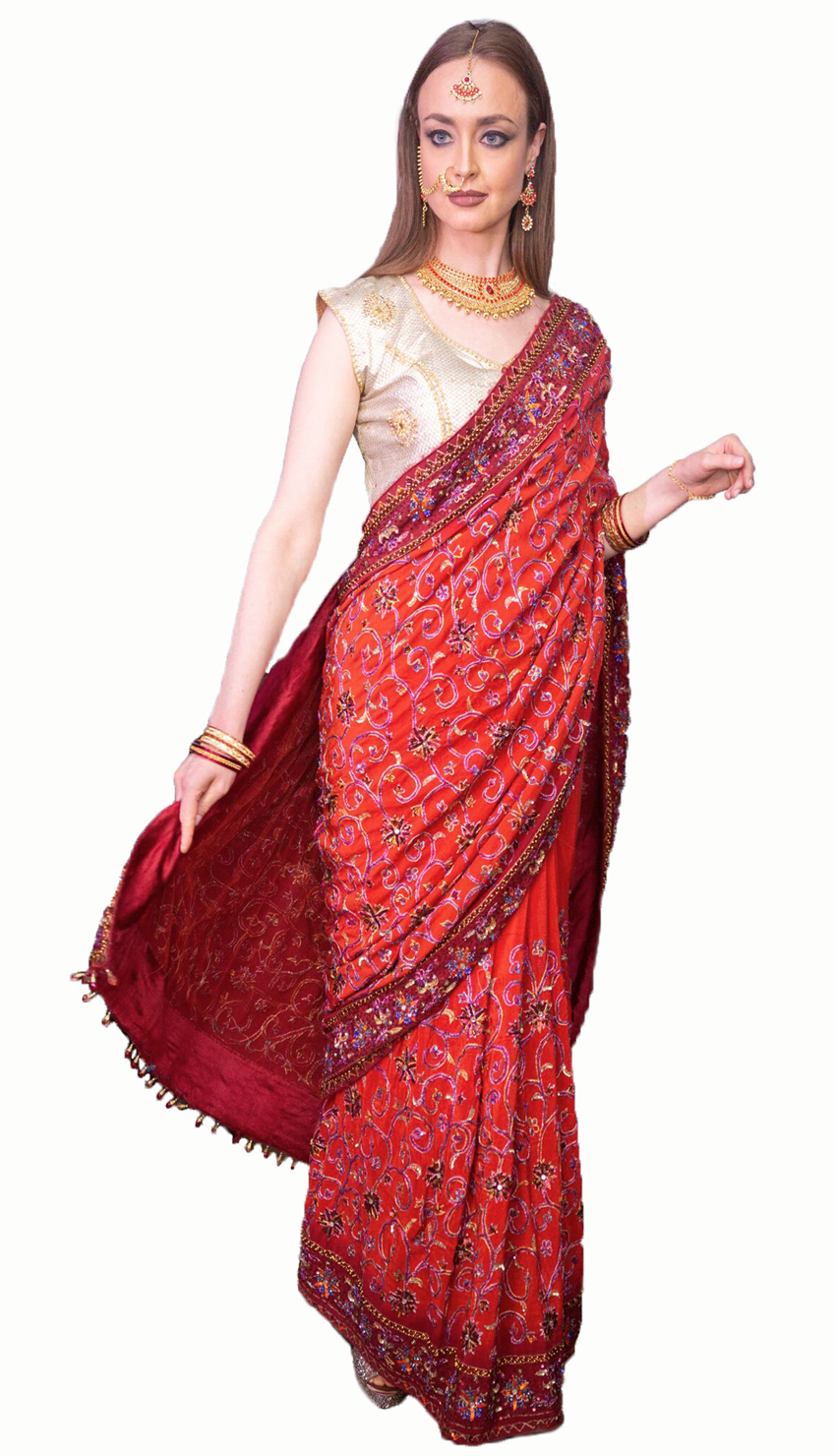 • Sleeveless Gold work Blouse  And saree Skirt Sold Separately