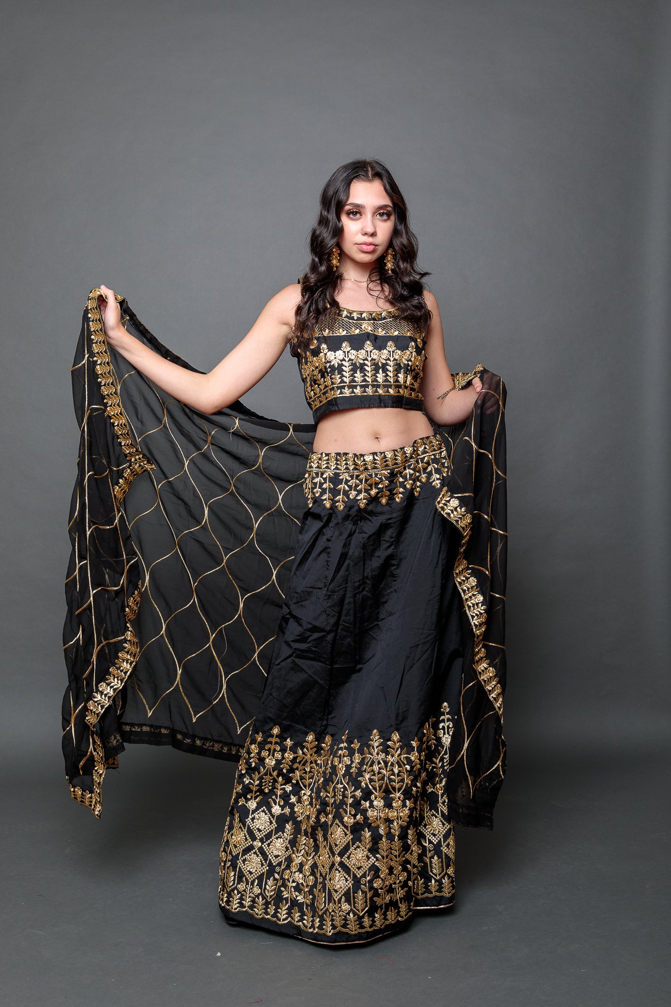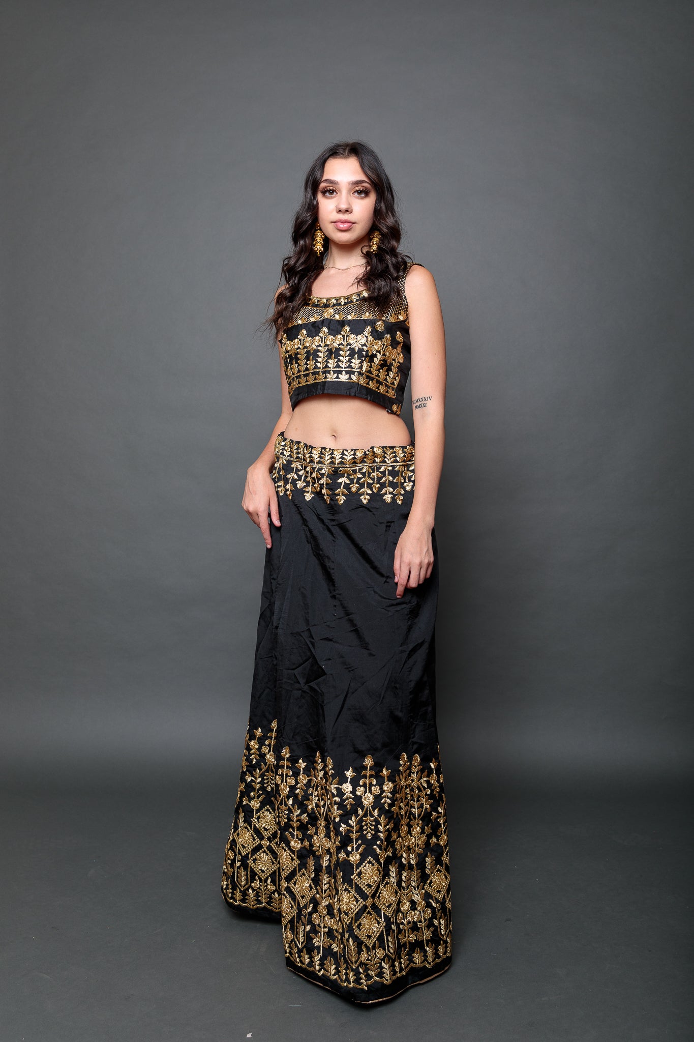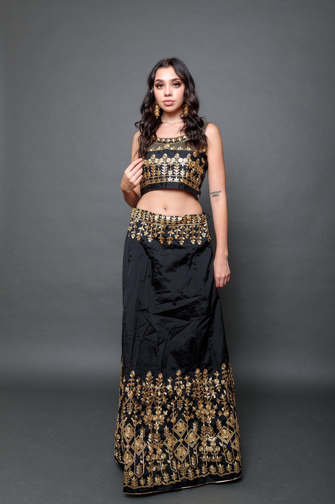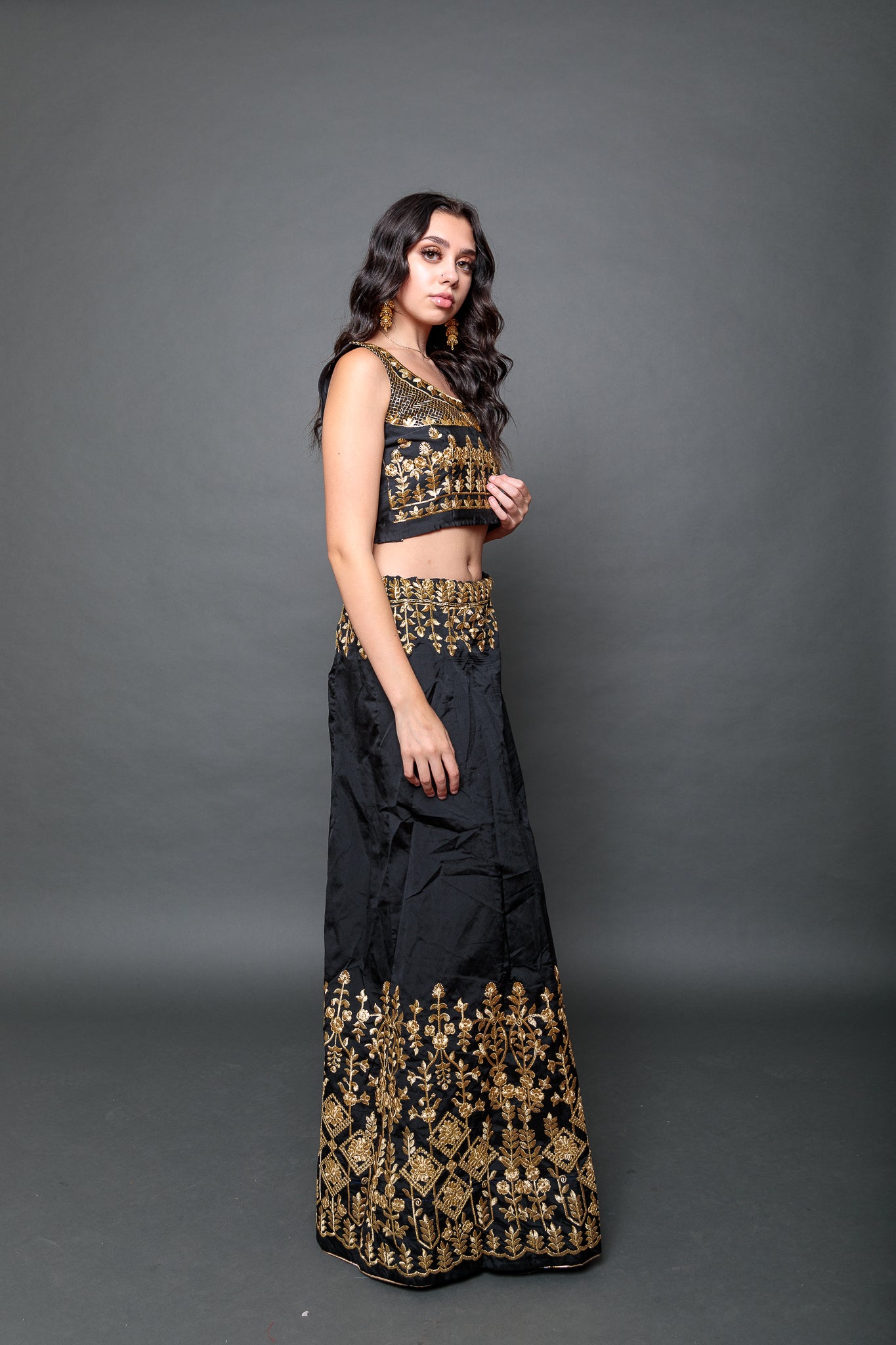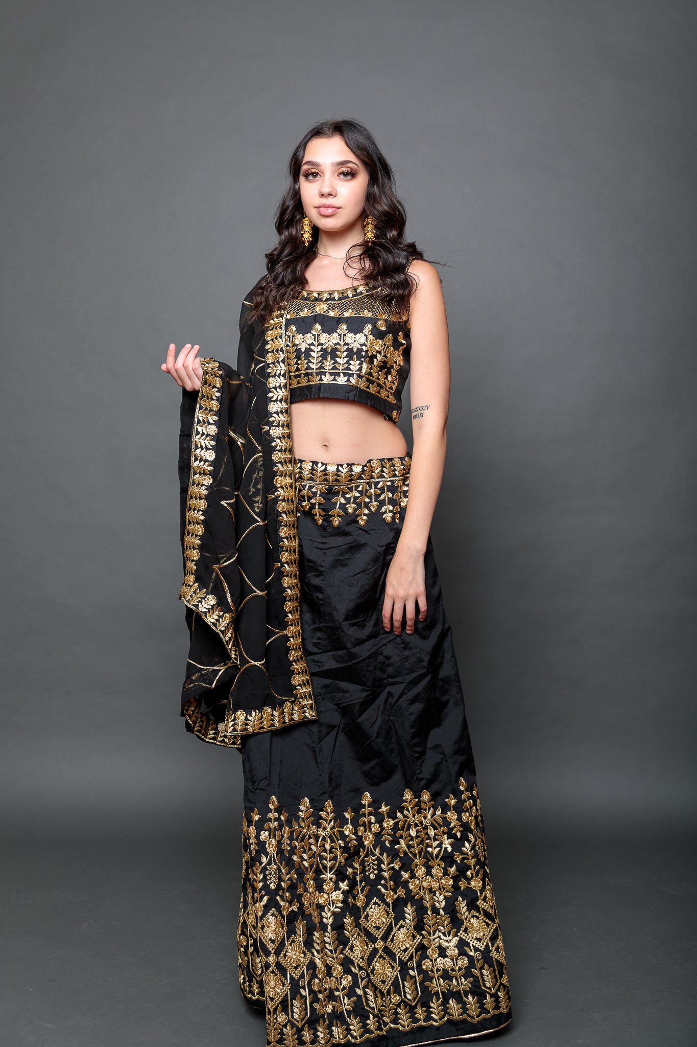 • Comes with Embroidered Scarf &  Crop Top ( Fit Size 38" ,Have 1.5" Margin On Both Sides )