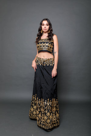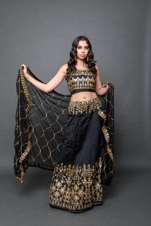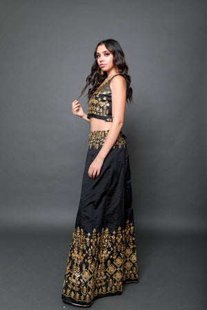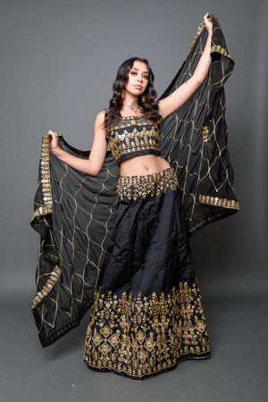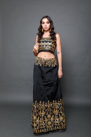 Silk Black Embroidered Lehenga Set
