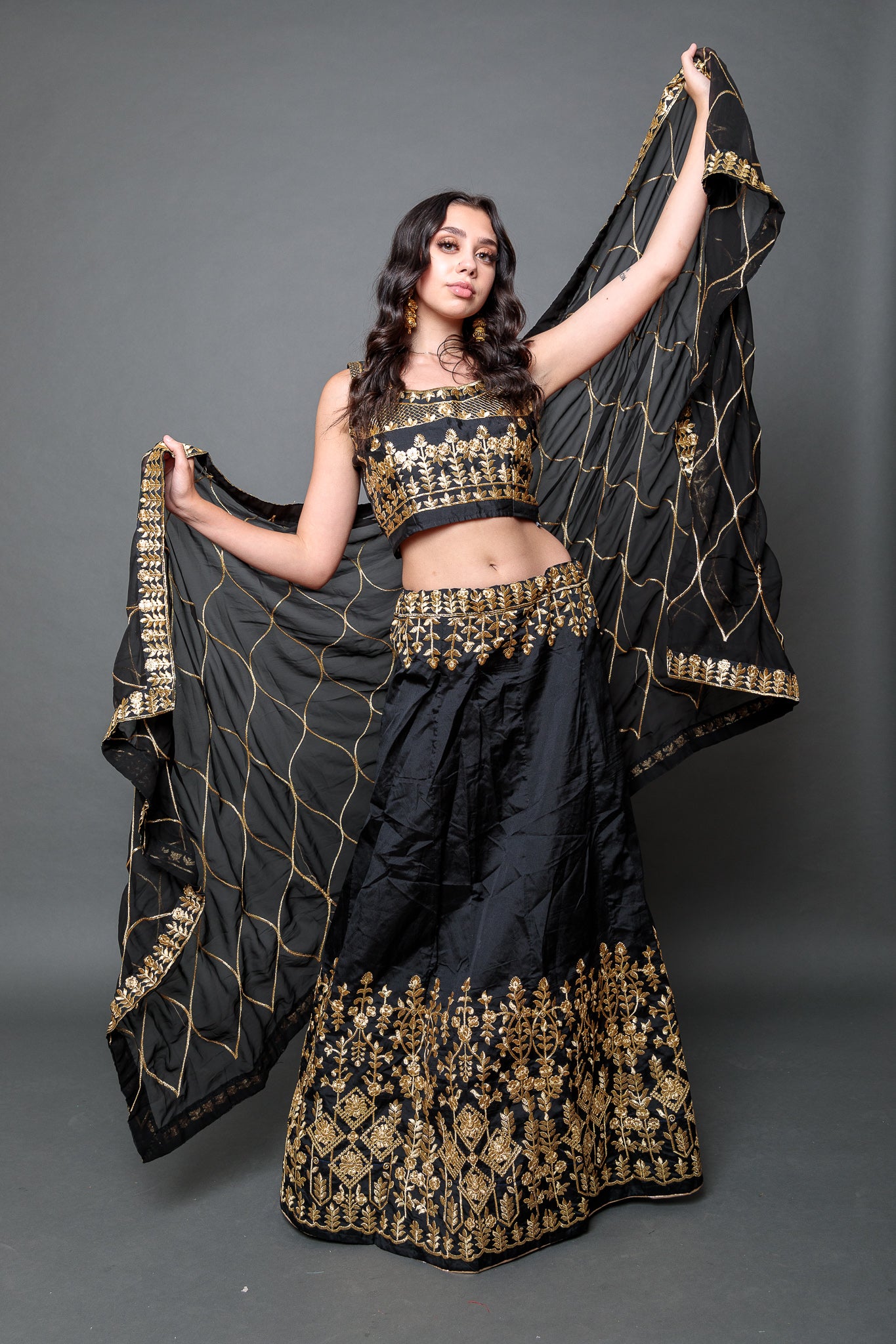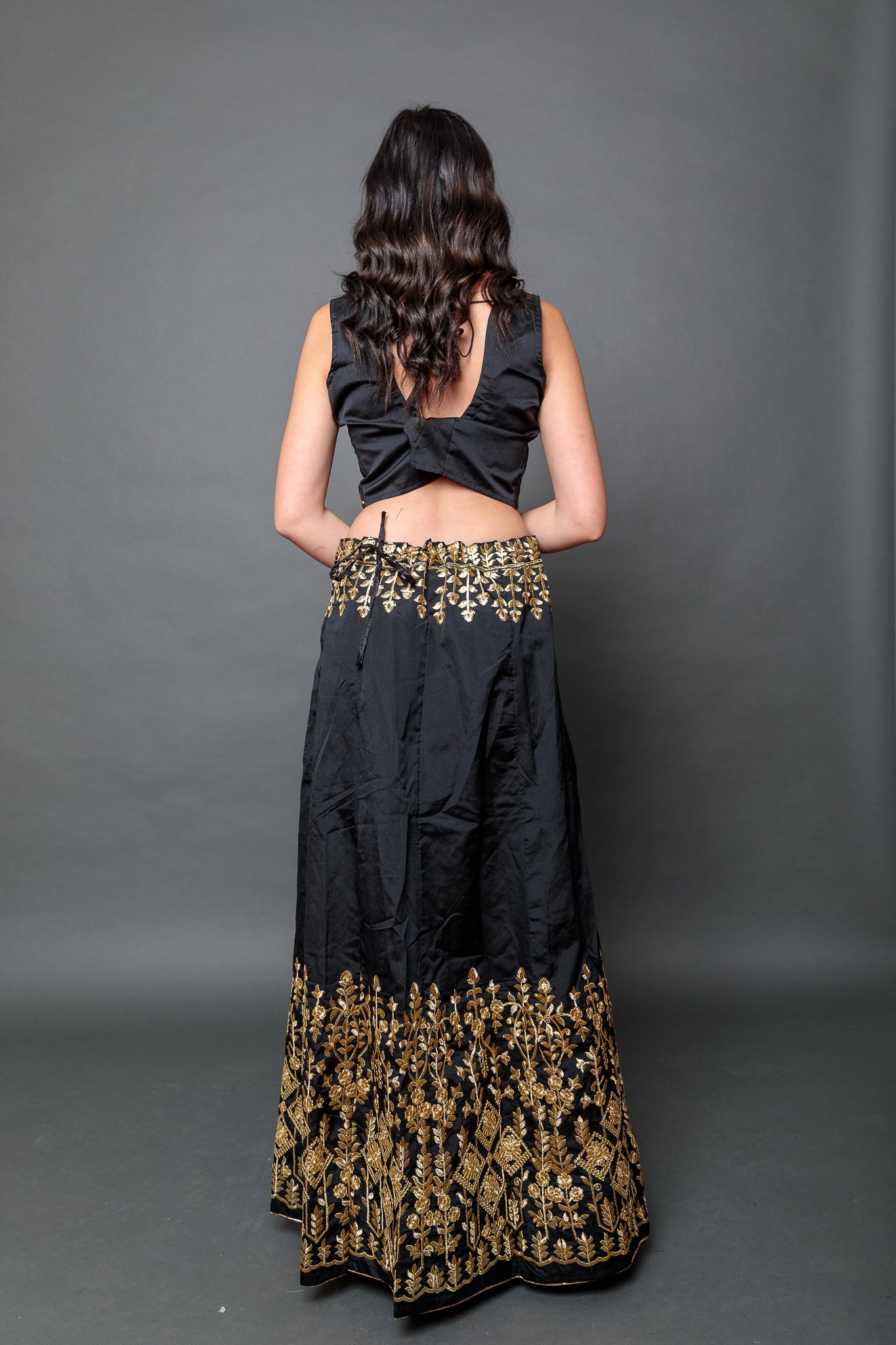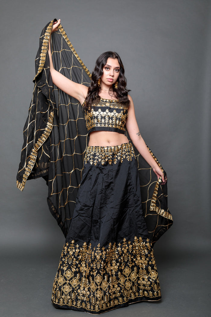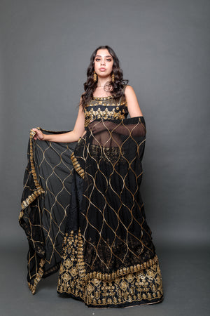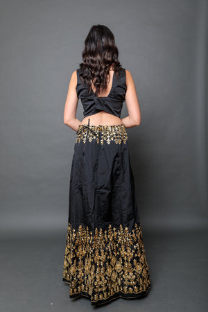 • Handmade Silk Black Embroidered Lehenga Set
