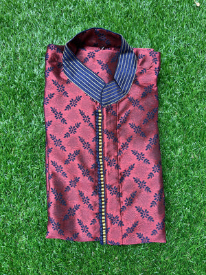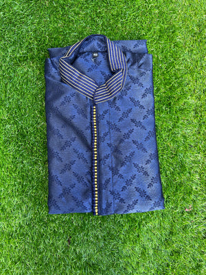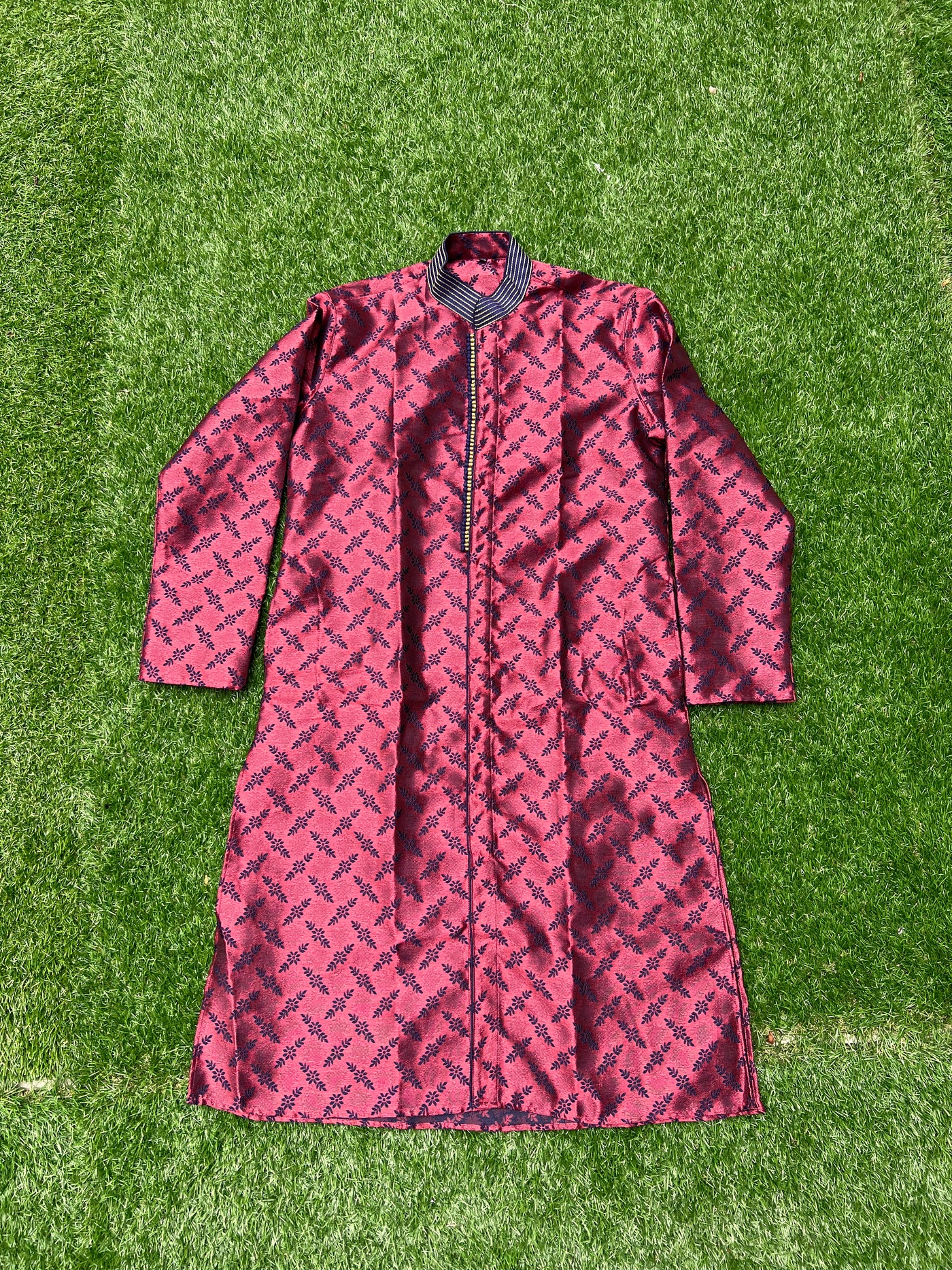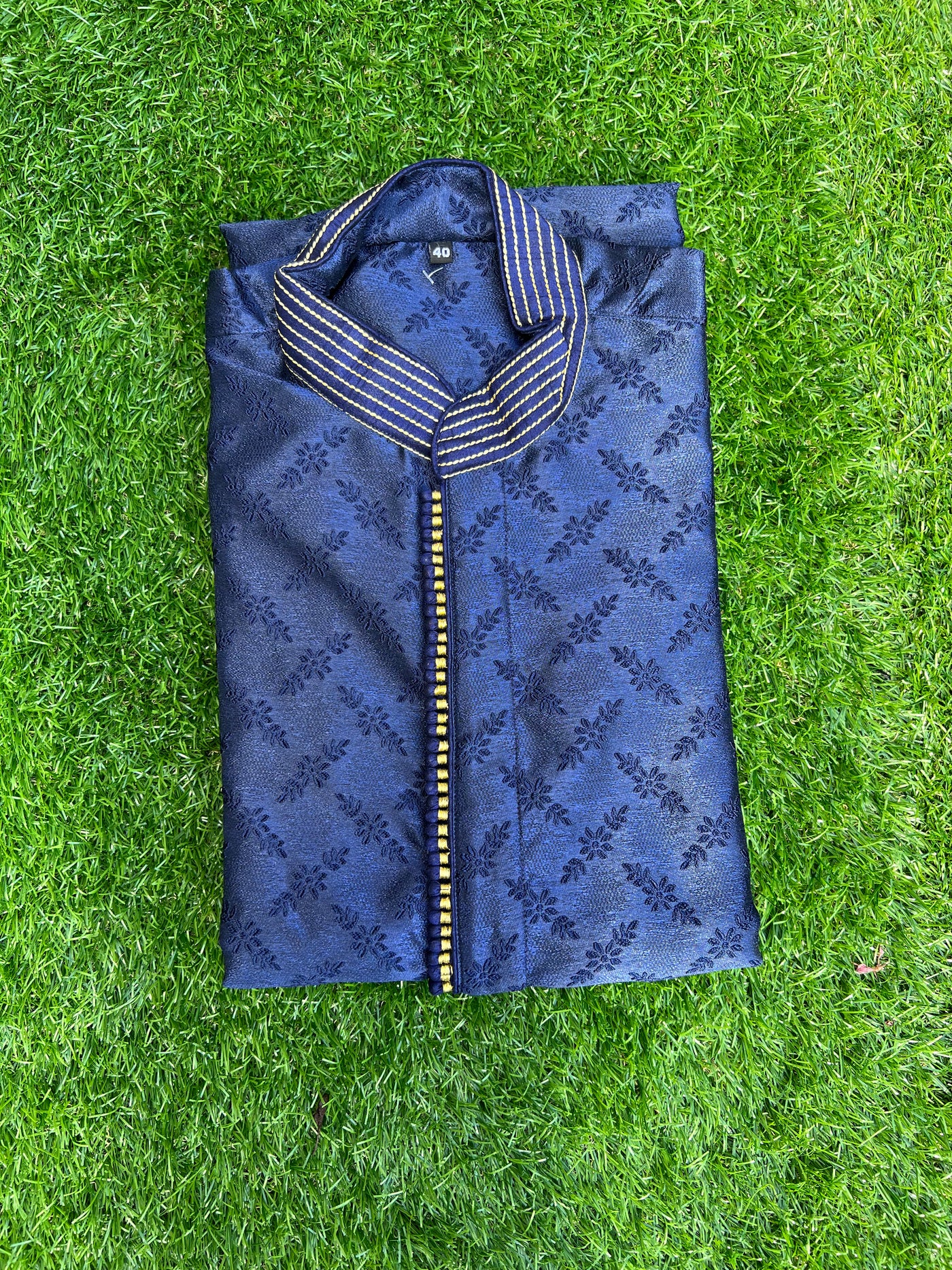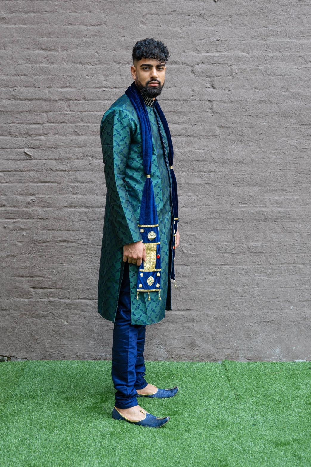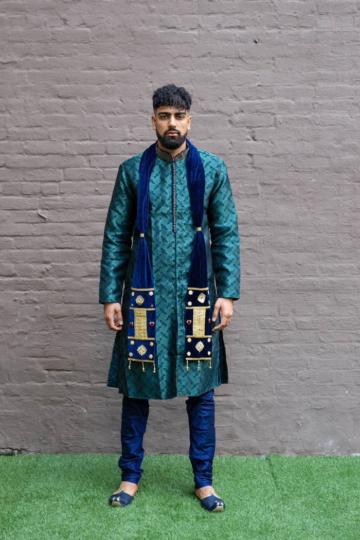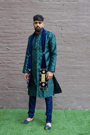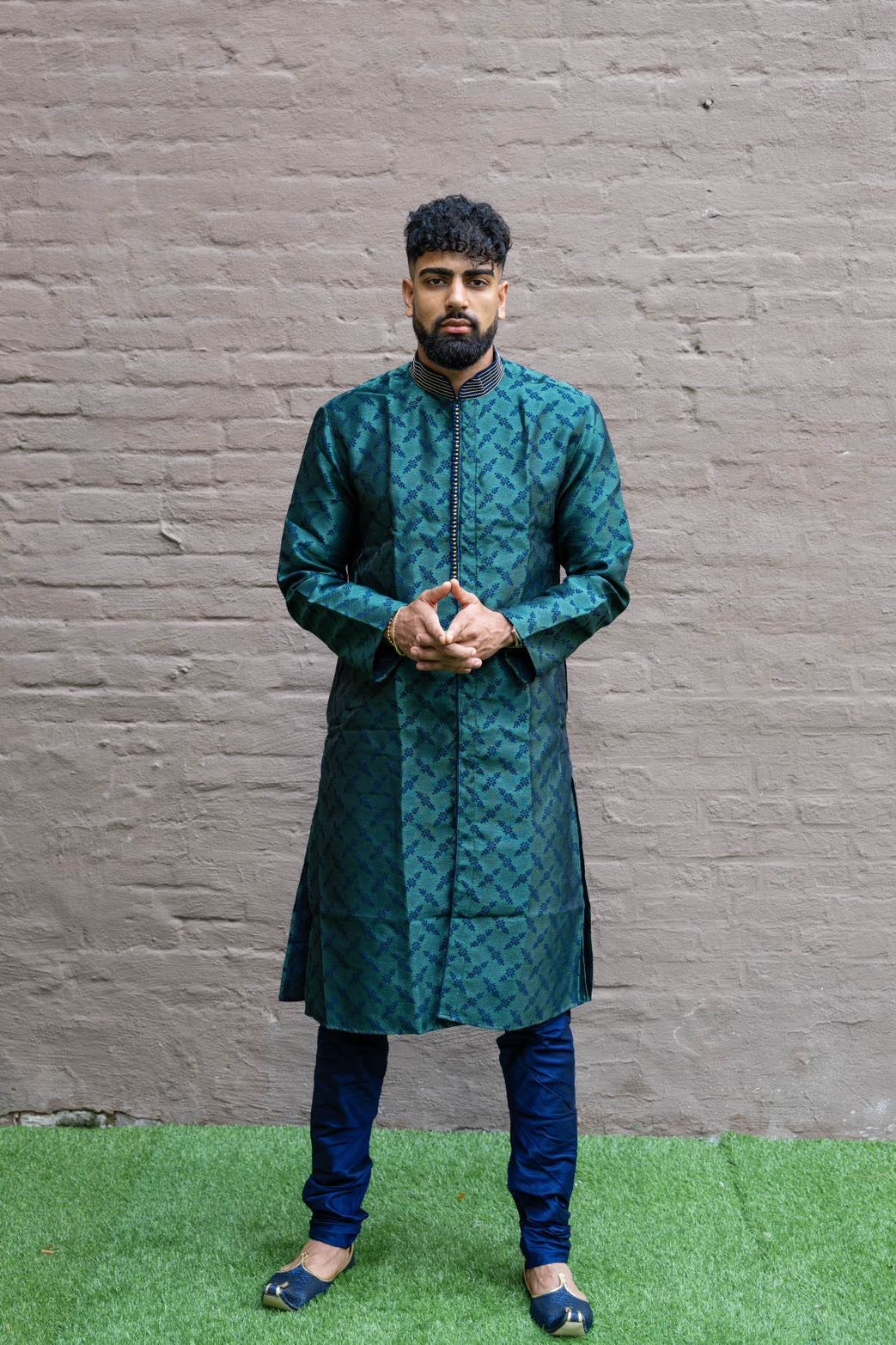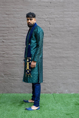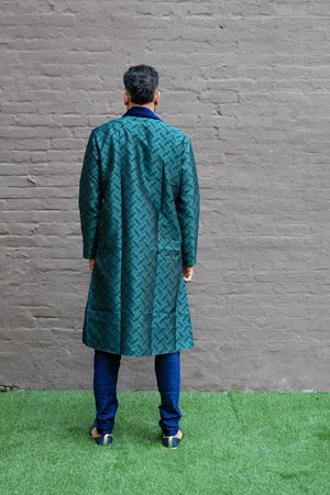 • Handmade Silk Brocade Forest Green All Button Down Men's Kurta