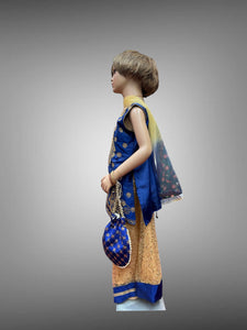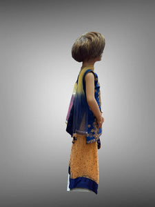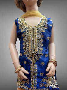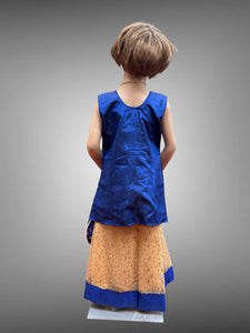 • Handmade Silk Embroidered Iridescent Royal Blue Kids Lehenga Set