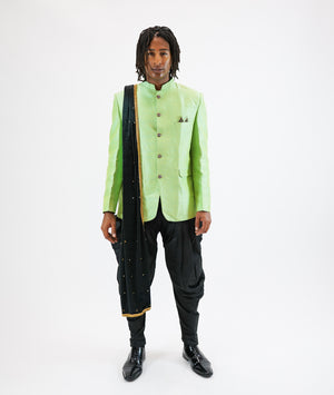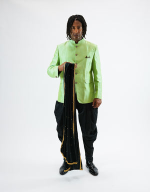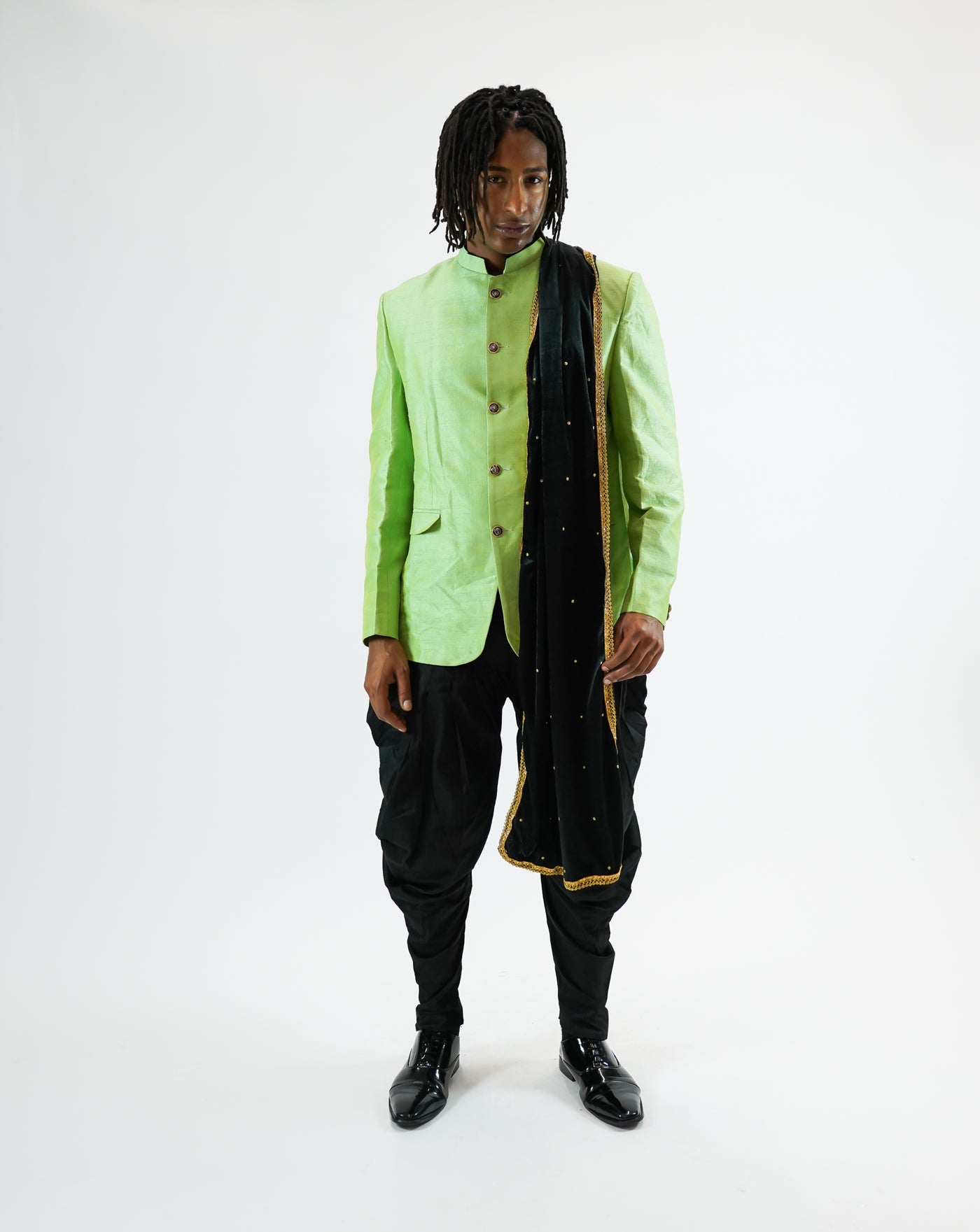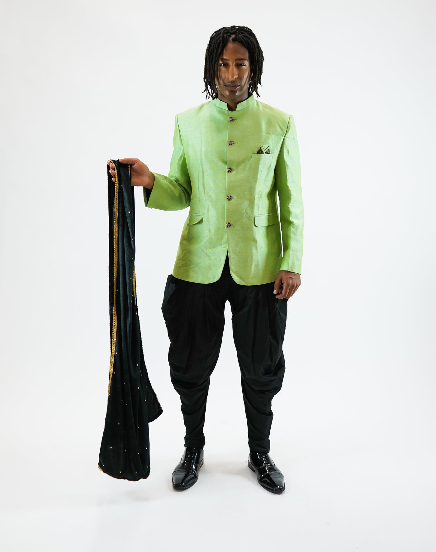 • Model Is Wearing Silk Black Dhoti Pants ,Scarf & Shoes  sold separately