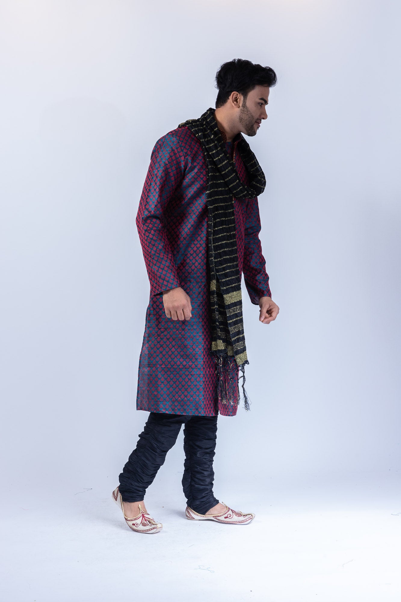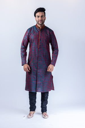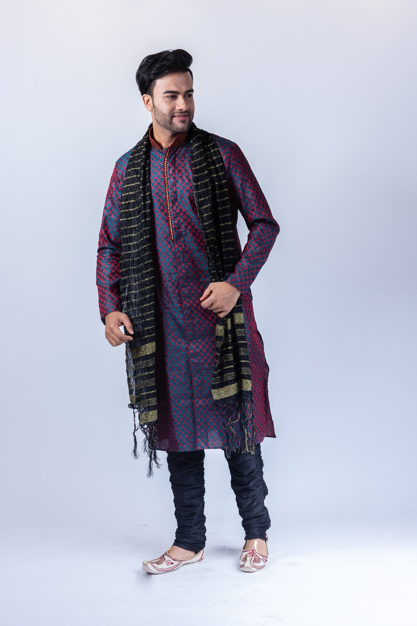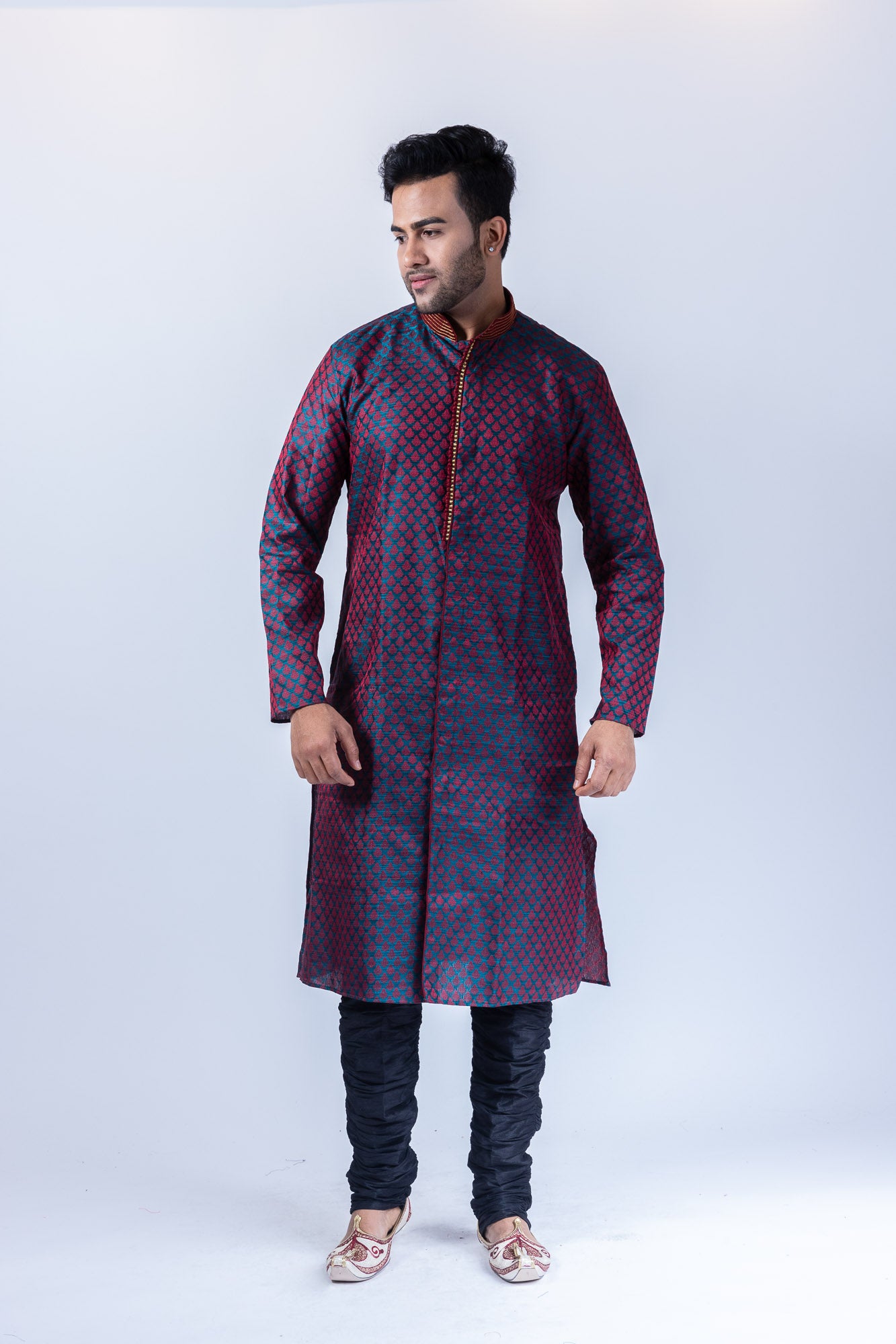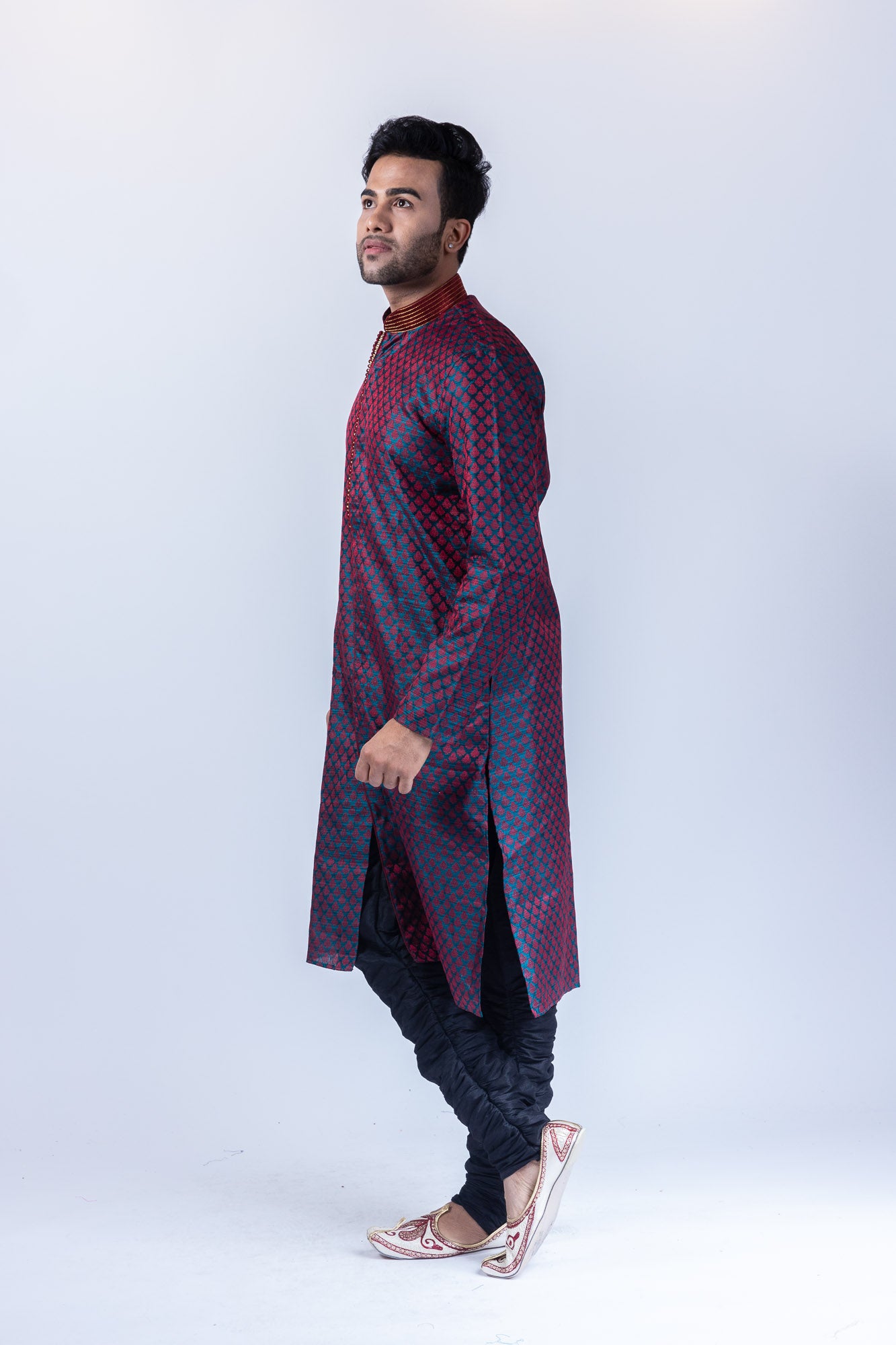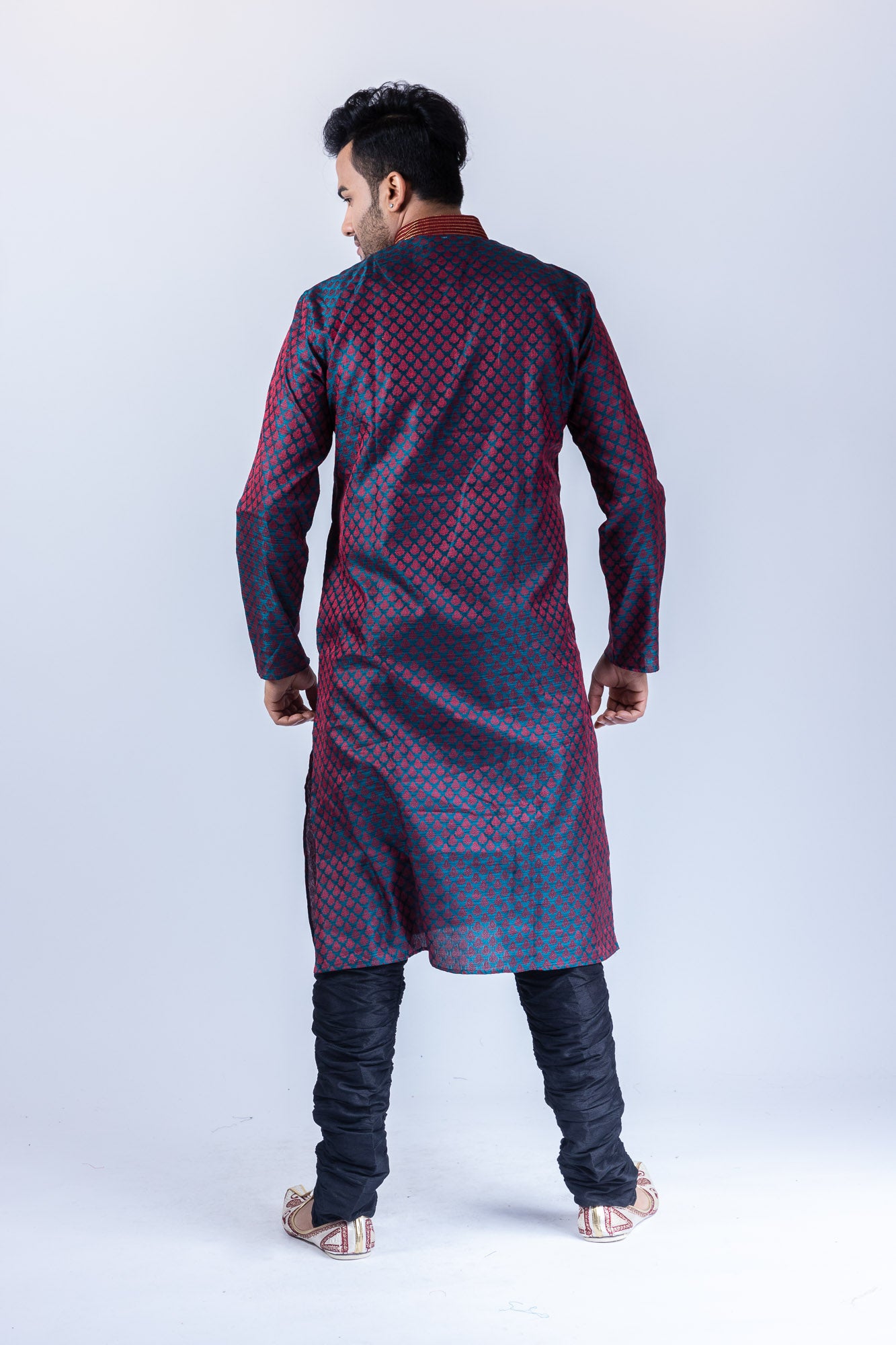 • Handmade Silk Pine Green All Button Down Men's Kurta