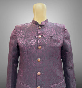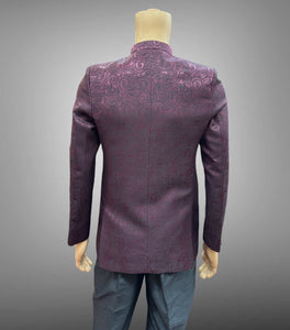 • Handmade Silk Self Printed Dark Wine Short Jacket / Bandhgala  /Jodhpuri
