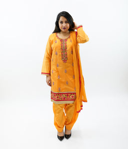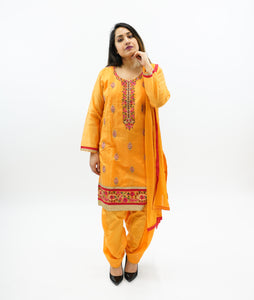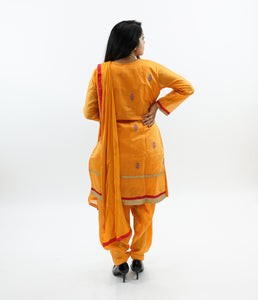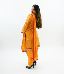 • Handmade Cotton Silk Embroidered Apricot Orange Salwar Kameez